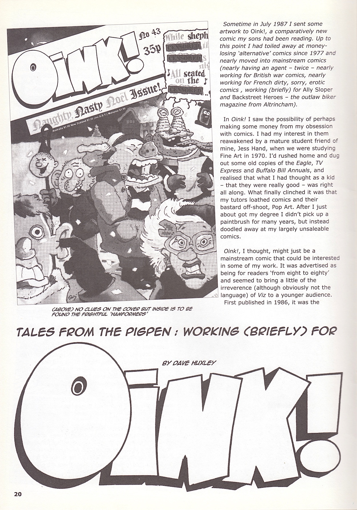 Dave Huxley may have only contributed to three issues of OiNK but that didn’t stop the Crickey! fanzine from asking him to talk about the comic back in 2008. Dedicated to the nostalgia of classic British comics, Crikey! kicked off as a quarterly before it quickly became bi-monthy, eventually added more colour and ended up with a proper distribution deal before distributors Borders collapsed, taking the magazine with it.