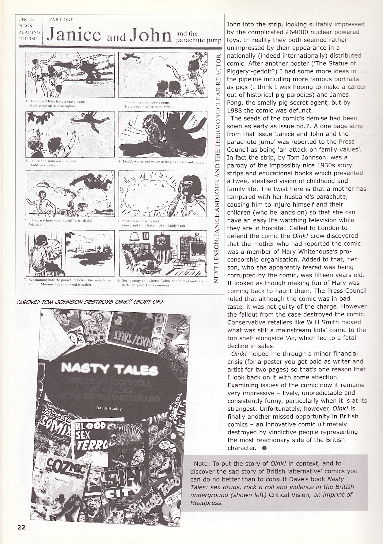 I’ll admit this is the only issue I’ve read and that’s because I saw the OiNK logo on it while browsing eBay, and the corresponding article is one of the main highlights of the issue. It isn’t an interview, it’s actually written by Dave himself and at times it can be wonderfully insightful. Sadly, it kicks off with the Viz comparison, despite that comic not being mainstream at the time nor an influence on the OiNK creative team. And, Tom Thug a “Viz-like character”?