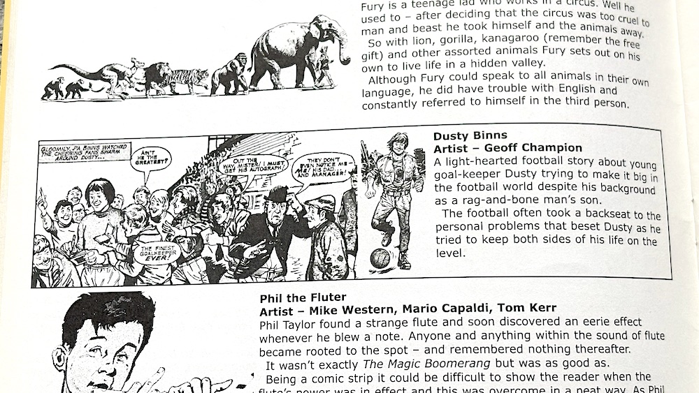 Elsewhere, there are a few articles about girls’ comics, one of which asks why girls enjoyed them so much? It seems to have been too much to ask that Crikey! hire a woman to answer the question, though. Gil Page, who was still working for Egmont at the time spends much of an article about classic comics bitching about the modern market, which is a bit surprising given his employer. Unfortunately, there’s quite a bit of this sort of thing throughout, which dampens the reading experience. For example, an otherwise interesting article about Commando loses me the moment the writer starts to complain about today’s “politically correct world”. Sigh.