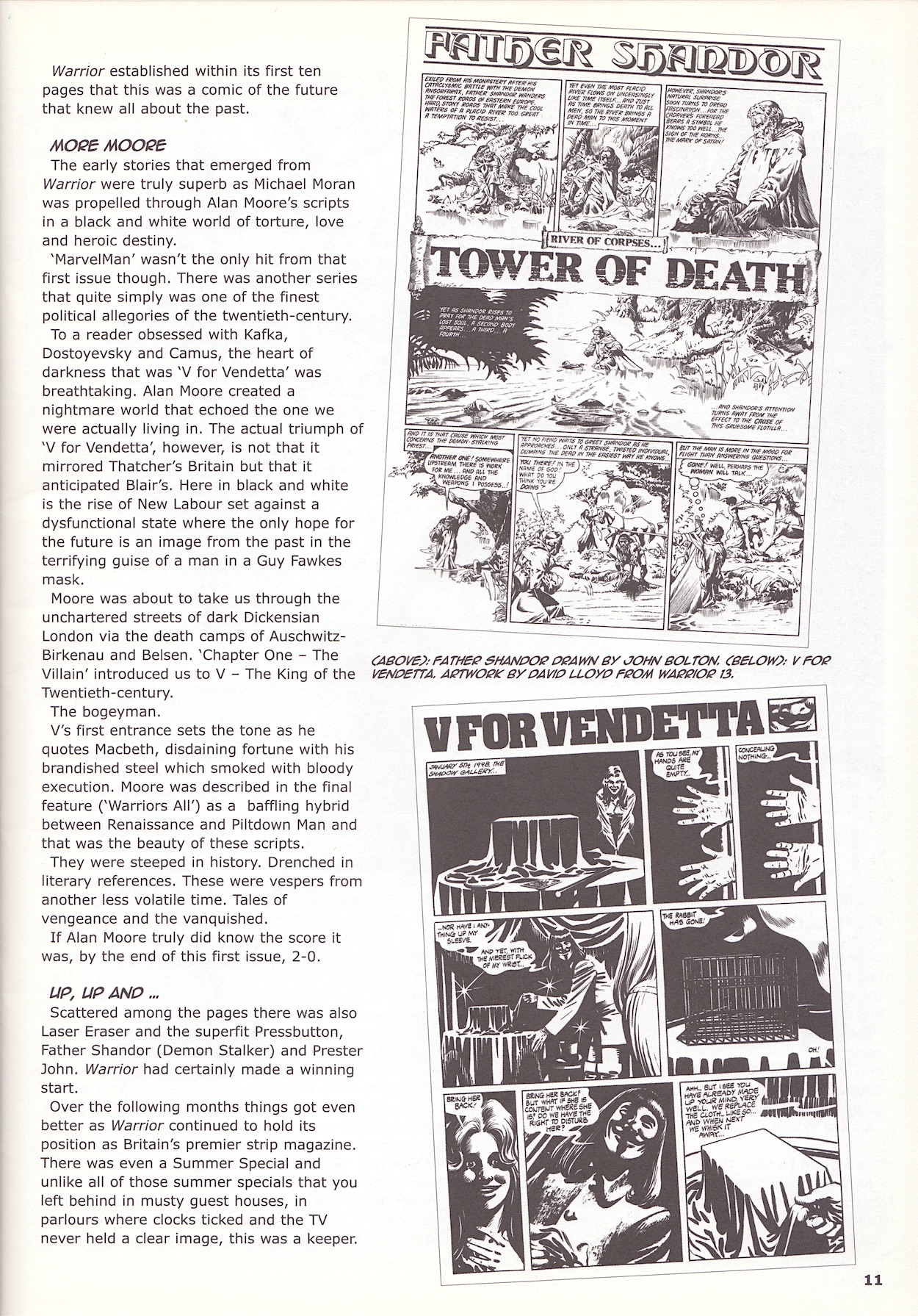 While we’re here I spotted a few little moments elsewhere in this issue that might be of particular interest to OiNK Blog readers. In an article about Warrior comic V for Vendetta is included (although I think the writer has twisted the story to suit his own politics) along with some of David Lloyd’s artwork. This was between 1982 and 1985, the same time David was producing the gorgeous artwork for the first two Knight Rider Annuals that have featured on the blog.