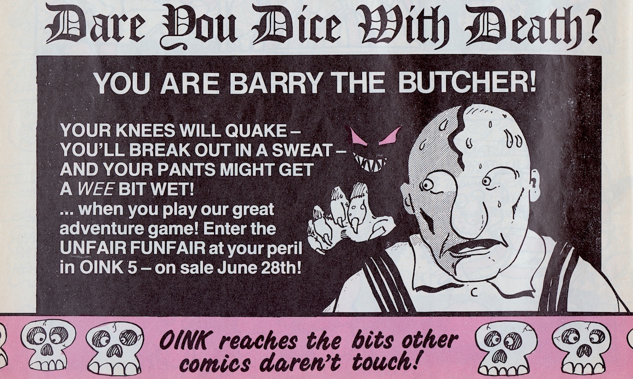 This Monday 28th June brings with it OiNK‘s take on the Make-Your-Own-Adventure books we used to enjoy so much as kids. Will you be able to escape the terrifying traps? Well, given the fact your character is a butcher in something called The Unfair Funfair, I wouldn’t count on it!