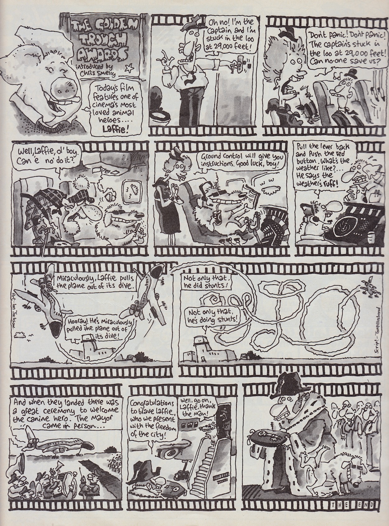 At least Simon has his television close by so he can somehow make it across his room without damaging his feet in time for the afternoon film, Laffie. The next instalment in the Golden Trough Awards series is my favourite. Taking the ‘Wonder Dog’ concept of Lassie and really running with it, it puts the canine hero aboard a plane when the captain finds himself stuck in the toilet tens of thousands of feet in the air. So a typical Lassie-type plot then.
