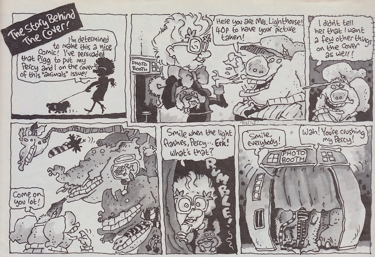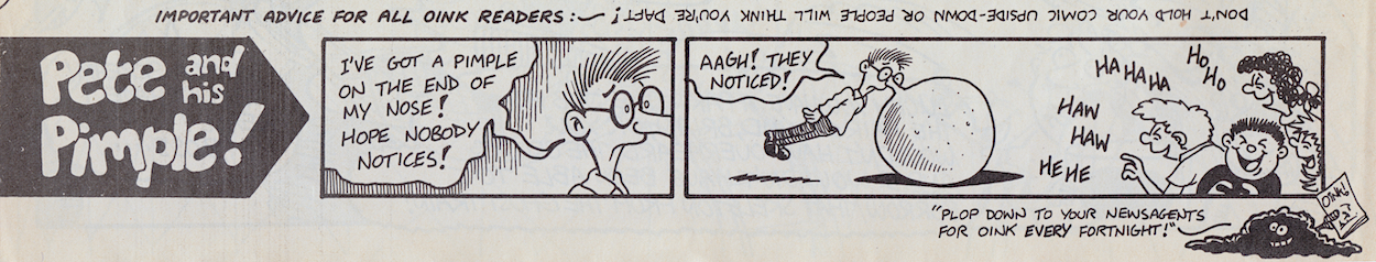 Of course at the time readers couldn’t have known how big a part in the future of OiNK Pete and his Pimple were going to play. Lew Stringer‘s creation would eventually return in #15, becoming one of the main strips in each and every issue, even continuing into the pages of Buster for a period after OiNK came to an end.