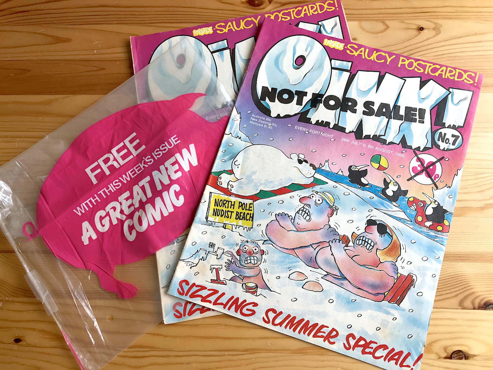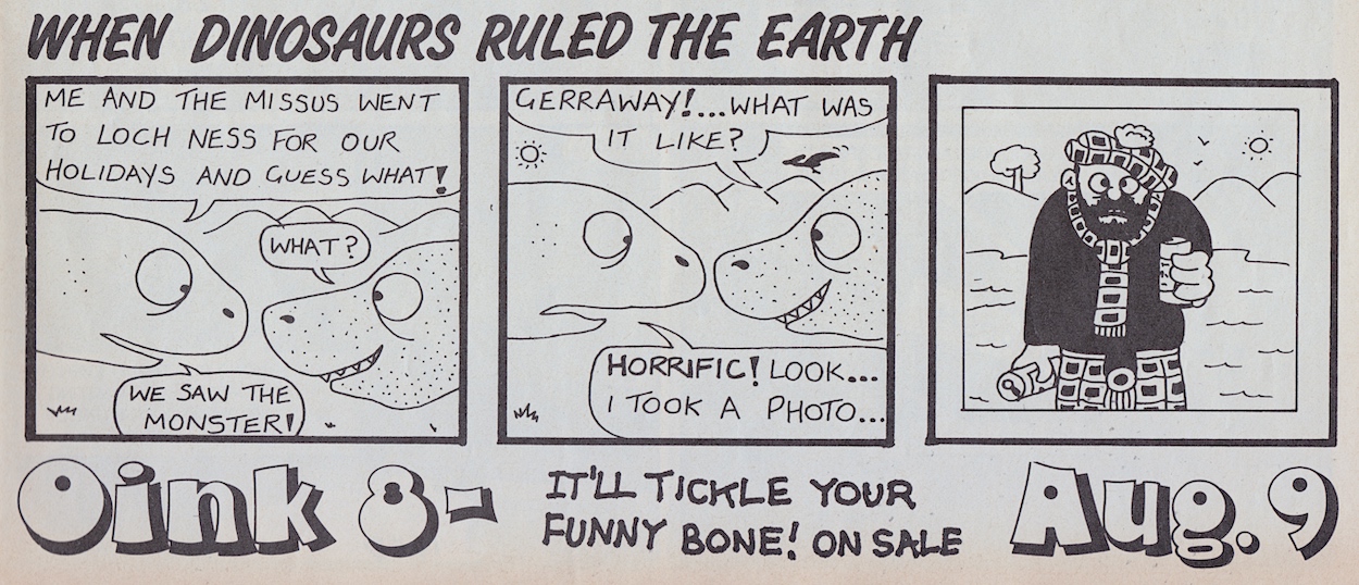While comics would normally have a separate Summer Special OiNK had only just begun so we’d have to wait for ours. But something else made it extra special, at least for readers of other IPC Magazine comics such as 2000AD. As with the preview they received this issue for free as part of a promotional push, hence the subtle “NOT FOR SALE!” over one of the covers above.