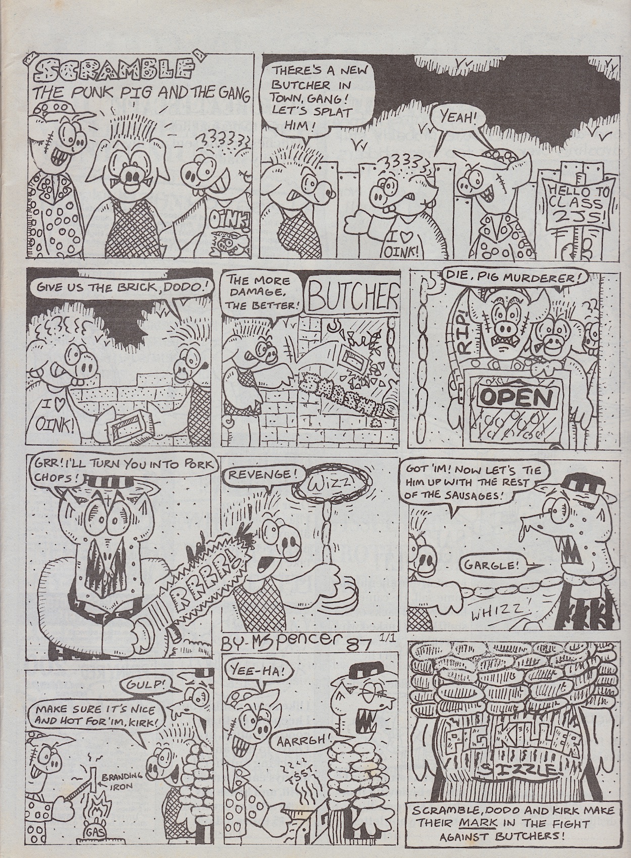 Percy Piglet turning the light out will actually get mentioned in our final highlight from this issue but before that here’s the winner of Granada TV’s Scramble competition as promised. I actually prefer runner up Ian Marshall’s Professor Foible but I wasn’t judging and when the winning strip features a gang of punk pigs it’s clear this was always going to be the winner. After all, co-editor Tony Husband was (and still is) a huge fan of punk music and always saw OiNK as the comic equivalent.