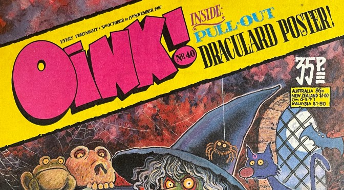 Coming up on Monday is the highly memorable 40th issue of OiNK, the second Hallowe’en edition. Featuring a simply gorgeous Ralph Shephard cover that any original pig pal will remember, I’ve my own very personal memories attached to this issue so expect a particularly nostalgic review in three days. The Next Issue promo from the previous issue set the tone perfectly for what was to come.