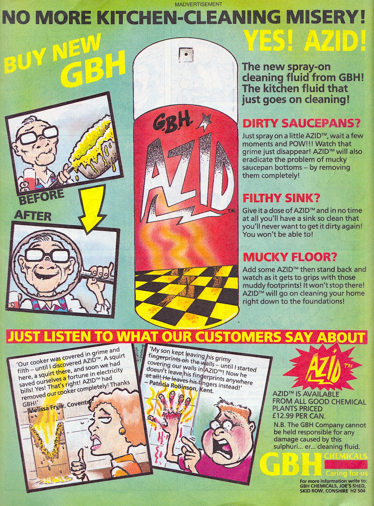 Billy Bang, Brian Luck He’s Really Unlucky, a quiz called Are You a Compulsive Liar?, Transmogrifying Tracey, The Adventures of Death and a GBH Madvertisement all have one thing in common in this issue. They’re all written by Charlie Brooker. This is a phenomenal feat for someone still at school to be writing so much for a mainstream comic. We obviously know of his incredible talent and genius comedic writing in later years but one look at this GBH Azid page and you can see even as a teenager he was already there.