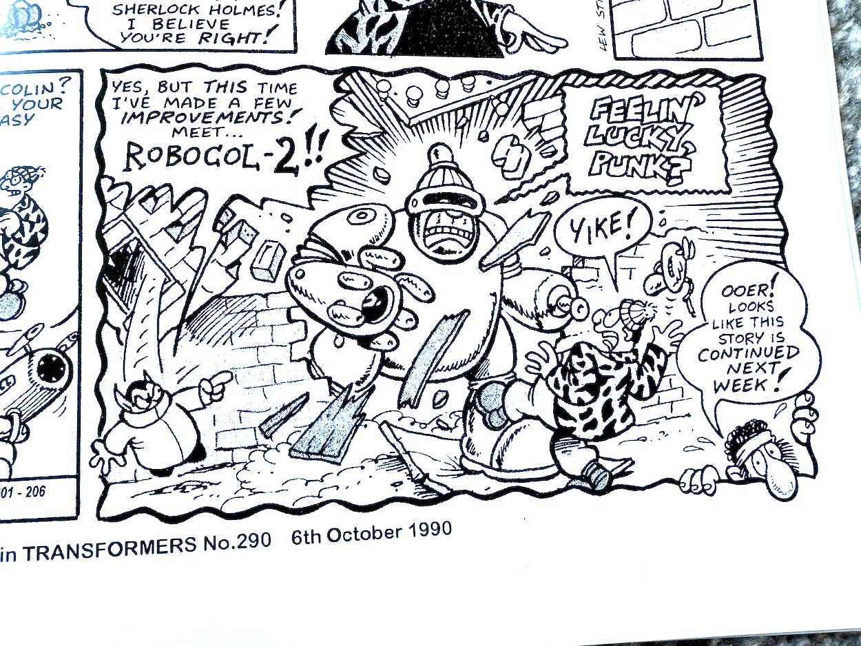 Light on plot but heavy on the action, character moments and throwing in a few laughs, it reads very much like one of writer Simon Furman’s monochrome strips from the latter part of the UK comic’s run. Anyone who followed along with my real time read through of the original comic will know this isn’t a complaint, far from it in fact. It’s a brill little strip, and to complete that UK comic flavour it’s even drawn by Geoff Senior (and kudos to Richard Starkings and John Gaushell’s letters below and Sarra Mossoff’s excellent colours).