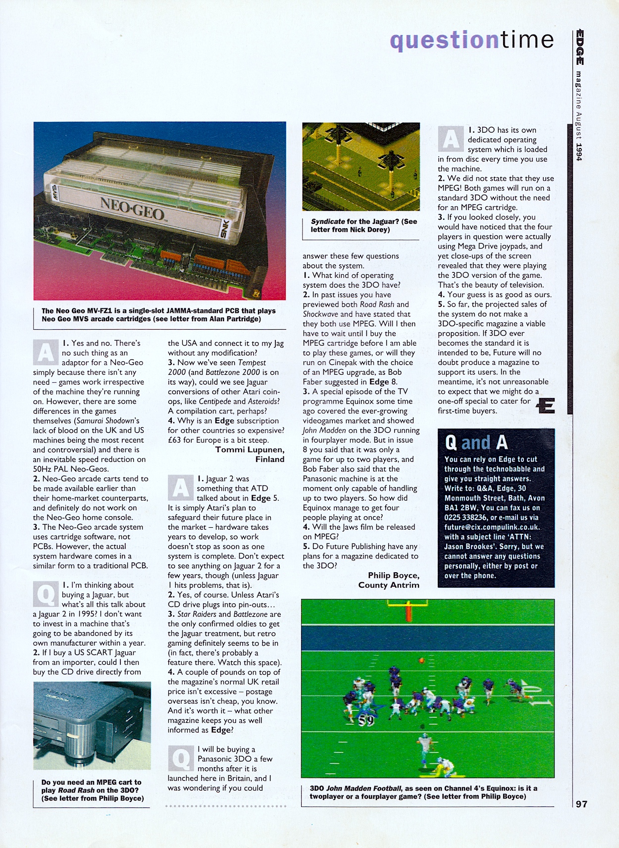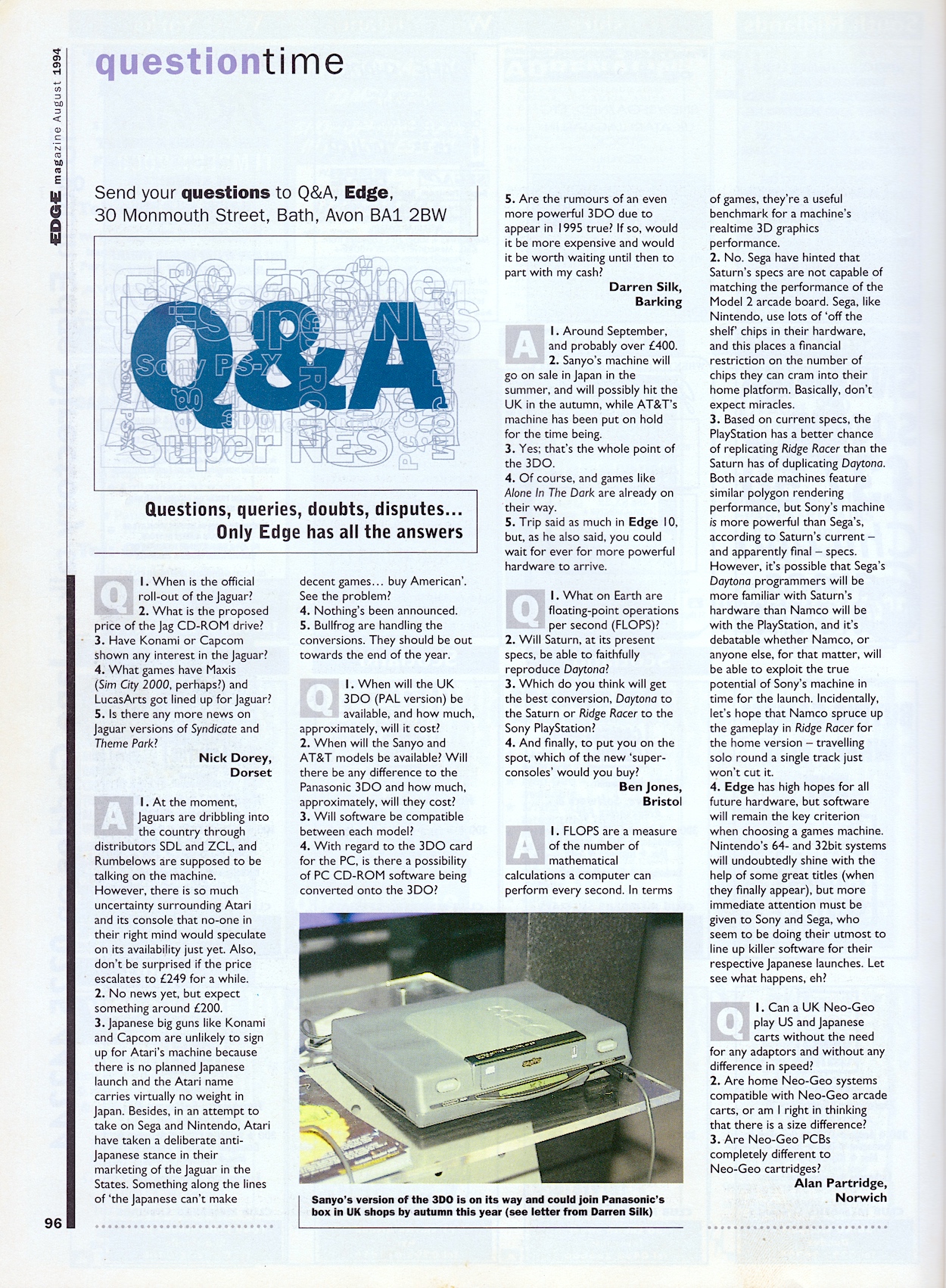 Why I thought Edge would know anything about Jaws I have no idea and I was heartbroken that Equinox had lied to us. As you can see I was by no means the only person hyped by 3DO and while I adored my Panasonic model, I still covet that Sanyo machine on the other page to this day. I also collected the bi-monthly 3DO Magazine around this time and got another set of queries answered in its final issue. Unfortunately, I never kept them and they go for silly money on eBay these days, but eventually I’ll track down what other not-as-important-as-I-thought-at-the-time questions I had and add that magazine to this post.