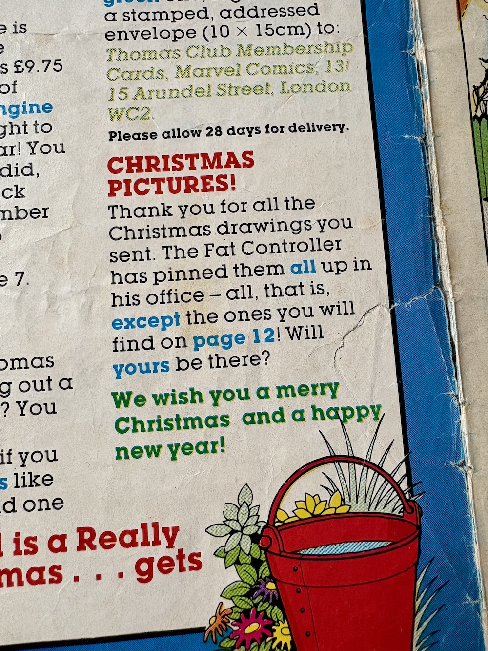 I can clearly remember my mum’s panic dissipating into laughter and a huge smile as I showed off the Thomas comic in my hand where my drawing had been chosen to be printed! I’m not sure why I’d never sent anything to OiNK over the previous two years (it had been cancelled two months before this), given the excitement I felt that day knowing thousands upon thousands of kids would see my Gordon, Thomas and Percy (the three Hornby engines I owned) in their Santa hats.