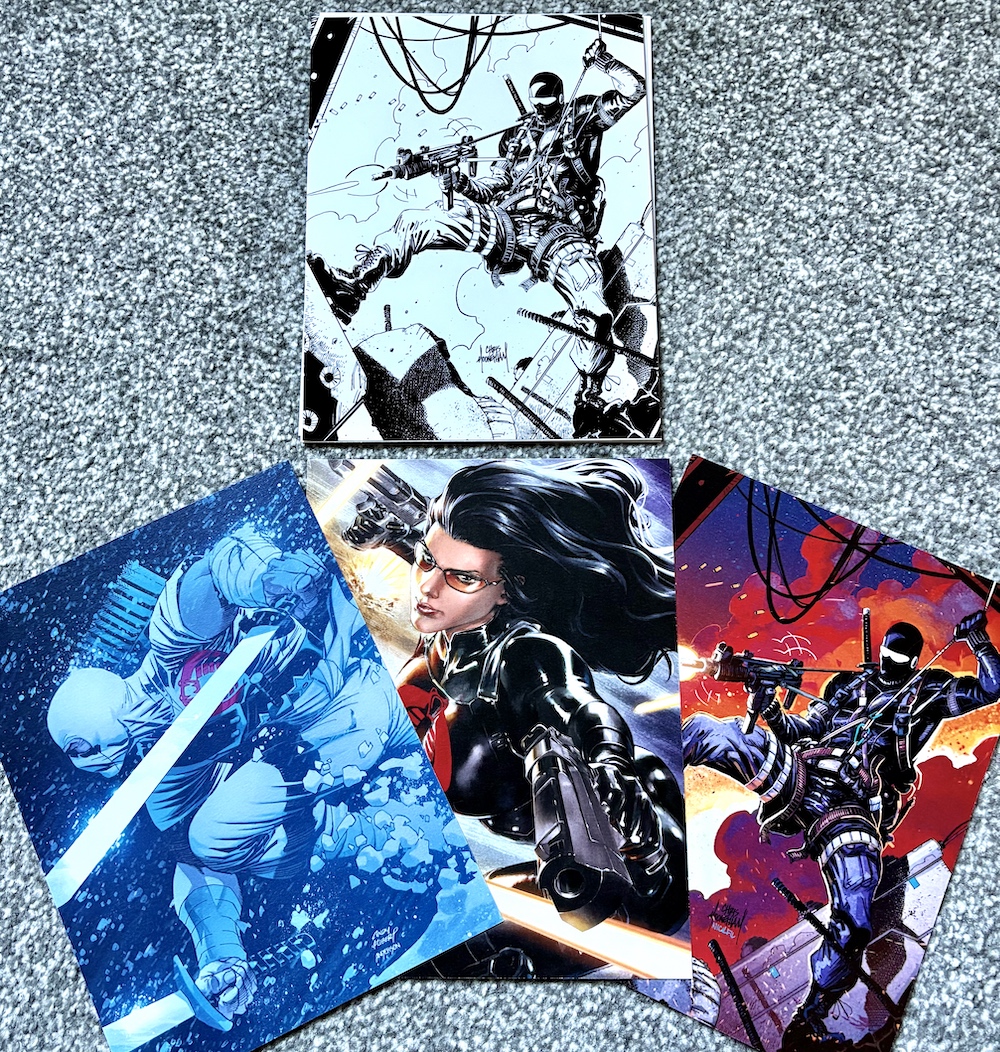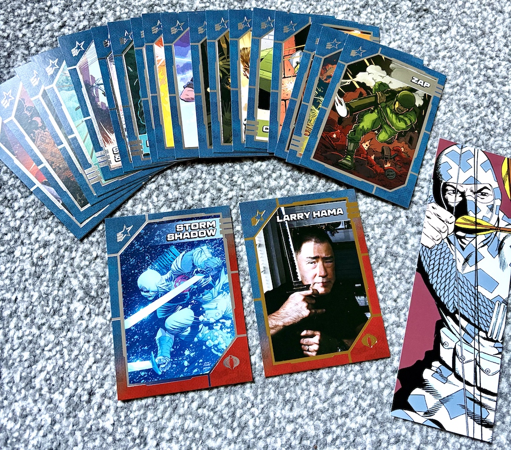 But that isn’t all. As the Kickstarter rocketed past stretch goals a whole bunch of extras were added, all of which are included here. There’s a pack of G.I. Joe trading cards, then nine more cards exclusive to this set, an additional exclusive Storm Shadow card, a double-sided bookmark, a sticker, pin badge, patch, prints and four posters showing the sides of both the G.I. Joe set and the red Cobra set that was also available.