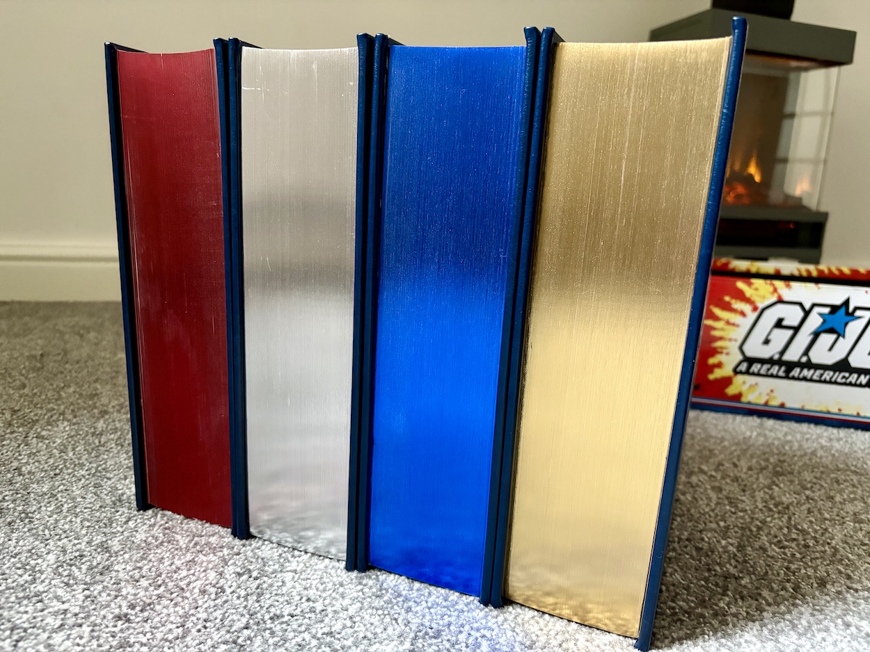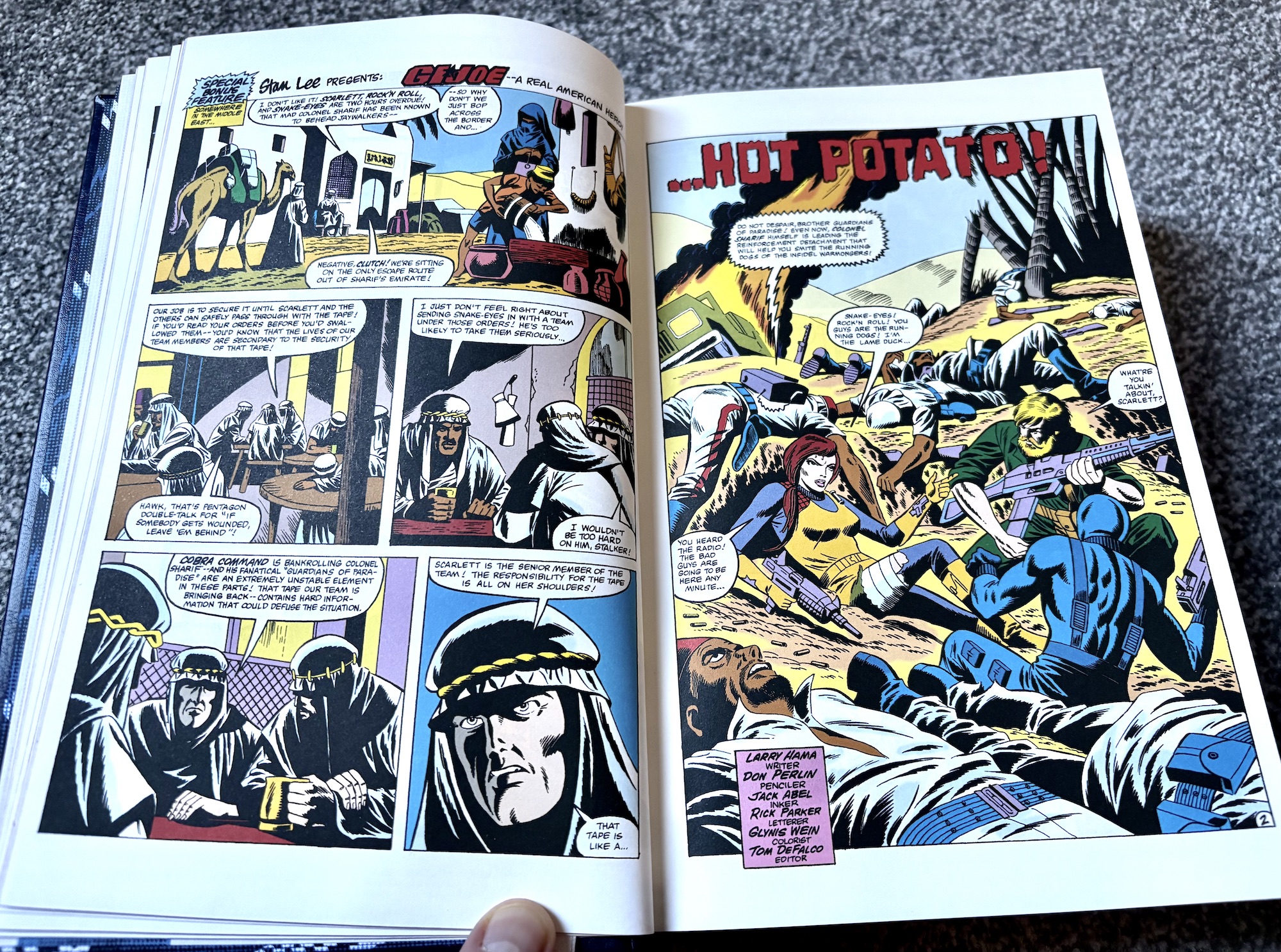 Reading about their design and seeing mock ups of them on Kickstarter never prepared me for how gorgeous they’d look and feel in real life. I love how they’re embossed and that the star on the front and spine matches each volume’s fancy gilded-edged pages. Aren’t they glorious? At over 620 pages each there’s plenty to get stuck into as well. In fact, inside the four tomes are 155 issues of the original comic, three Yearbooks, 28 issues of Special Missions, four issues of the Transformers crossover, four issues of Order of Battle and one G.I. Joe Special.