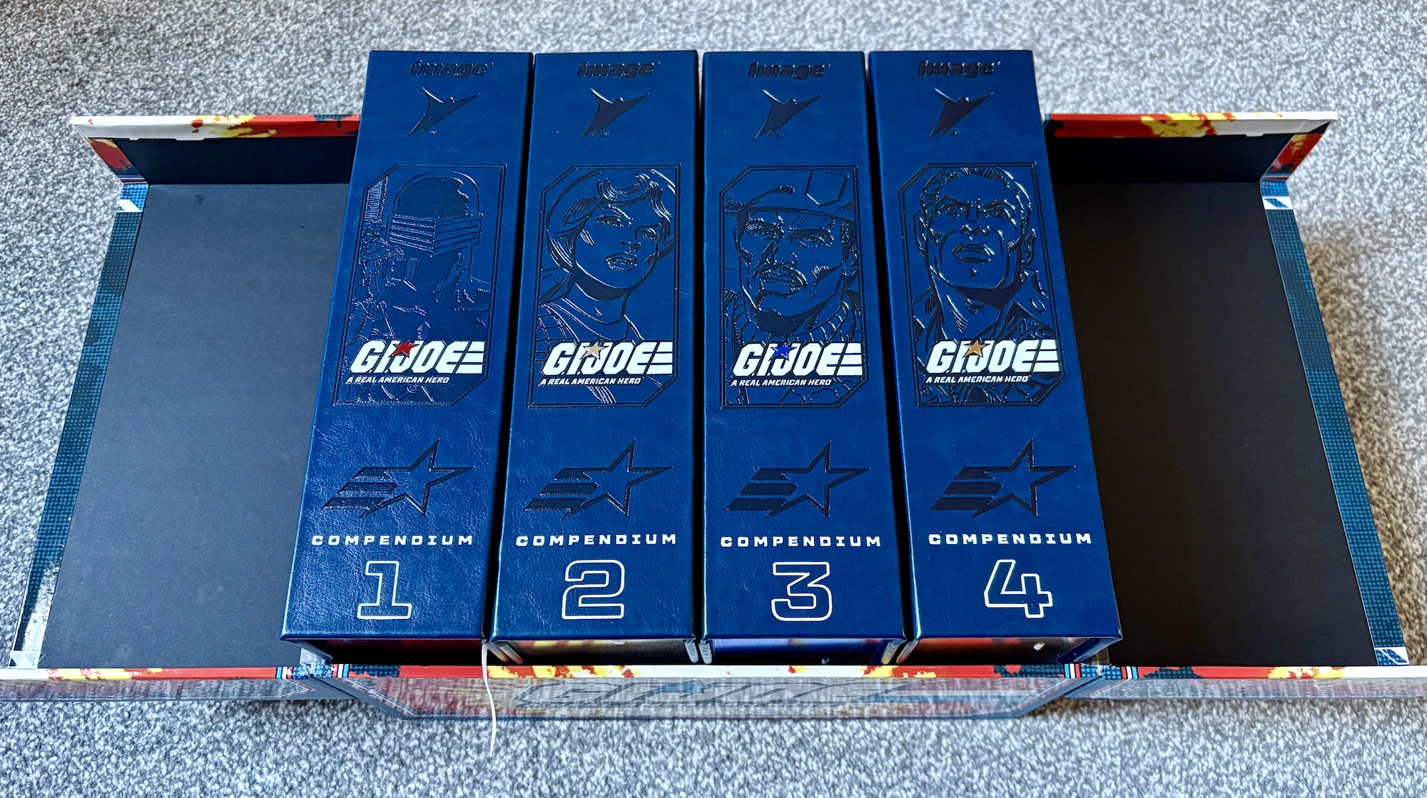 In May 2024 I told you all about a fantastic new Kickstarter project from Skybound Entertainment and Image Comics. With the rights to produce G.I. Joe (and Transformers) comics now in their more than capable hands they were not only carrying on the G.I. Joe A Real American Hero comic from #301 onwards, still written by Larry Hama no less, they’d also be reprinting ALL of the original Marvel run in what promised to be a quite awesome compendium box set.