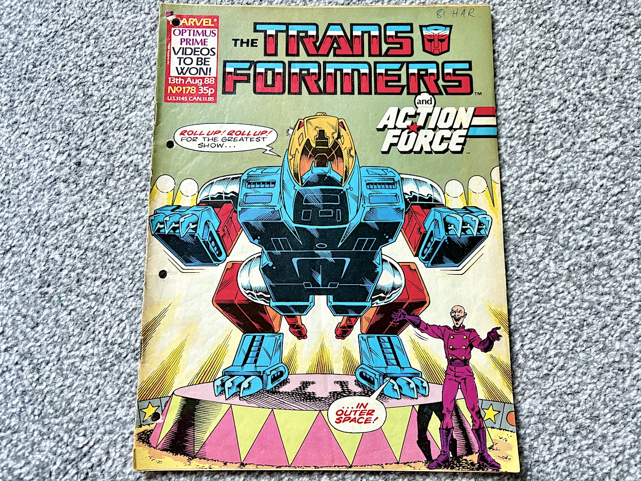 First up though, what’s with that circus-based Stephen Baskerville cover? The Cosmic Carnival is a story I’ve seen derided in the usual negativity-filled corners of the fandom but when I read it for the first time a handful of years back I found it to be a silly but fun story. Taking prisoner the brilliant Sky Lynx and the human children he’s protecting, a space station-based circus puts them to work in small display cages and in the ring for daring feats. It’s actually a clever script that highlighted the problem with zoos of the day, as well as introducing a wider universe of alien species to the comic.