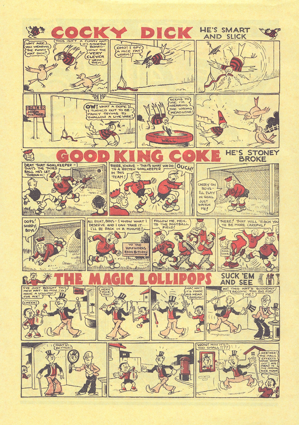 Here though, in this story drawn by Sid Burgon his peers appreciate his obsession and it’s also an example of how some strips could be edited for Big Comic’s audience. The year of the annuals has been changed, you can see a title has been erased from the one he’s holding in the shop and ‘Cor!!’ has been unceremoniously scribbled out in the last panel. I don’t think this was necessary, we all knew these were reprints, but I can understand why they did it.