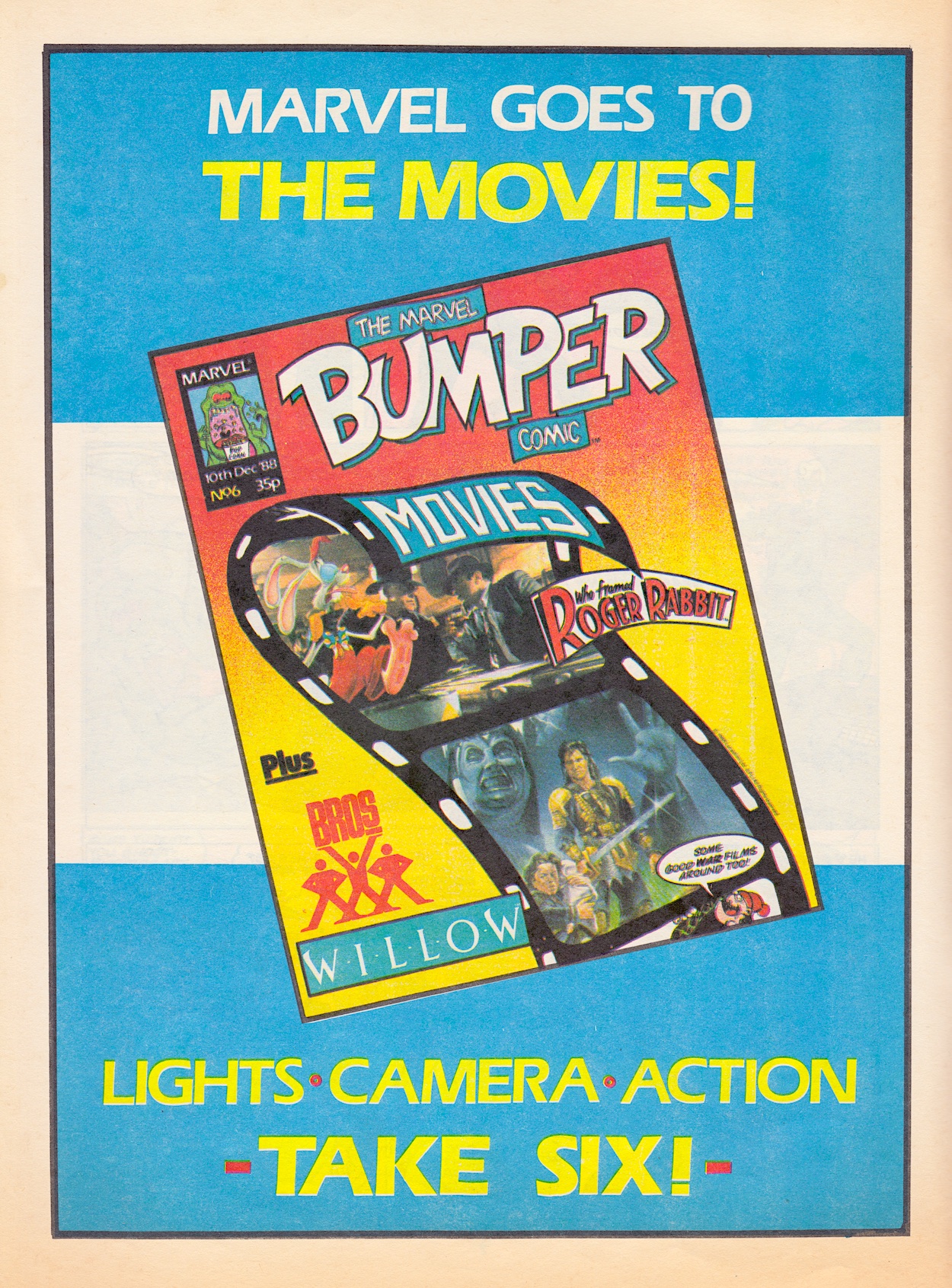 The only new comics advert this week is rather basic but the cover to the latest fortnightly Marvel Bumper Comic was enough to whet the appetite. Did these movies have strips inside or written articles? Maybe we’ll find out at a later stage on the blog? Hopefully, because I’d love to collect this series eventually. I do remember owning a Bros. special from Marvel UK (for some reason) and it contained comic strips. Bad comic strips, mind you.