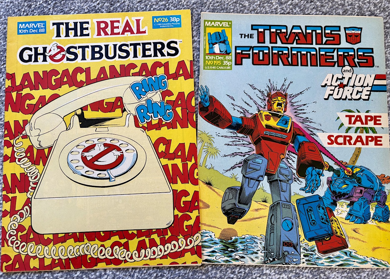As more and more houses on our streets put their decorations up and the ice over the railway bridge made walking to school an adventure, Marvel UK kept my friends and I warm with the latest issues of The Real Ghostbusters and The Transformers and Action Force, with covers drawn by Dougie Braithwaite with Dave Hine, and Stephen Baskerville respectively.