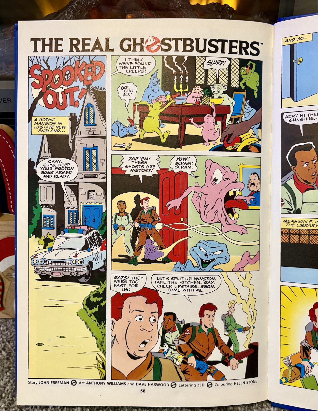 Written by John Freeman, drawn by Anthony Williams and Dave Harwood and coloured by Helen Stone, Spooked Out! sees the team battling against a gaggle of ghouls and try as they might they can’t help but get more and more overwhelmed by them. It seems this could be the first failed job but when Peter chases after Slimer to bust him you know something’s up.