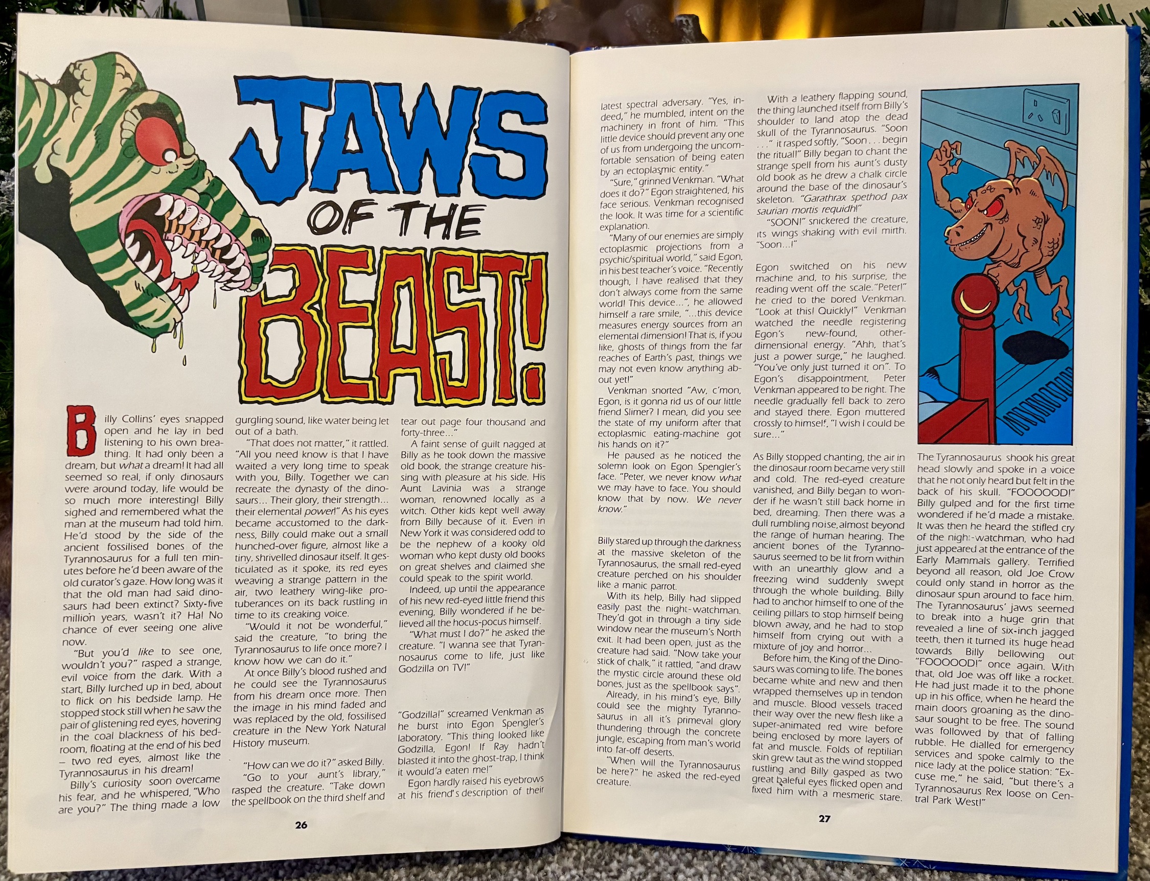 Moving on to our prose stories and Jaws of the Beast is written by artist Nick Abadzis (Death’s Head, Vector 13, The Big Book of Death) and colourist/editor Steve White (Xenozoic Tales in the UK’s Jurassic Park, The Sleeze Brothers, Dragon’s Claws).It’s a tale about a small winged beast who invades a boy’s wishes. This particular boy wished he could see a real Tyrannosaurus rex, so obviously this leads to the team eventually being chased by said dinosaur through the streets of New York.