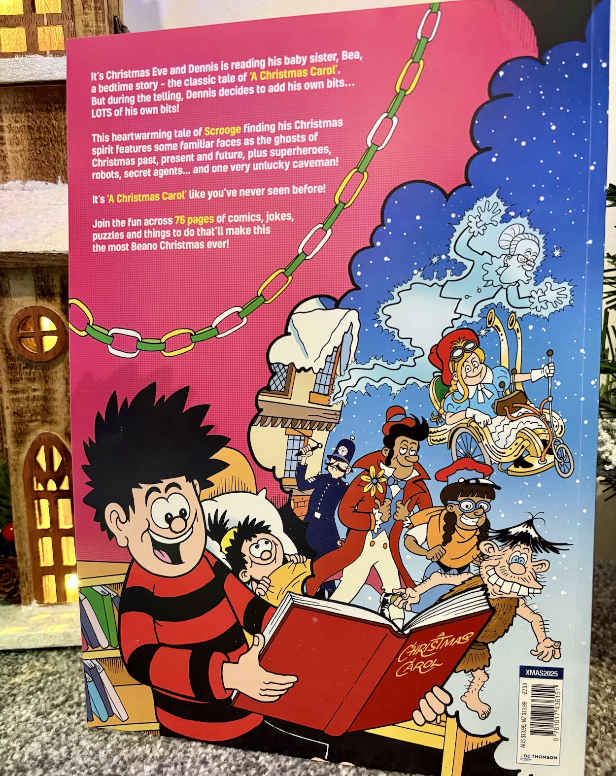 Dennis is lumbered with reading a bedtime story to his little sister, Bea as Christmas Eve draws to a close and his mum hands him A Christmas Carol. But of course Dennis is never going to have the attention span to read a whole book so he leaves bits out, retells existing bits and adds completely new parts to liven it all up.