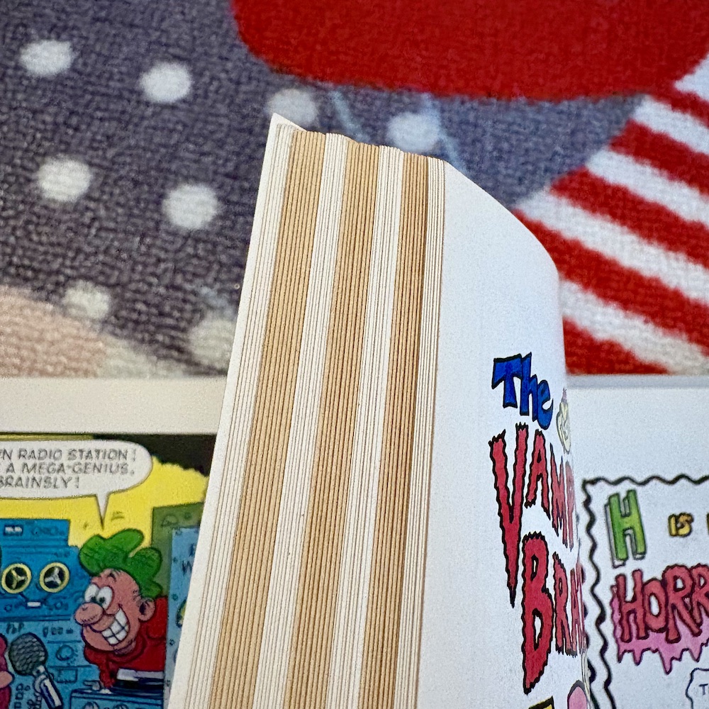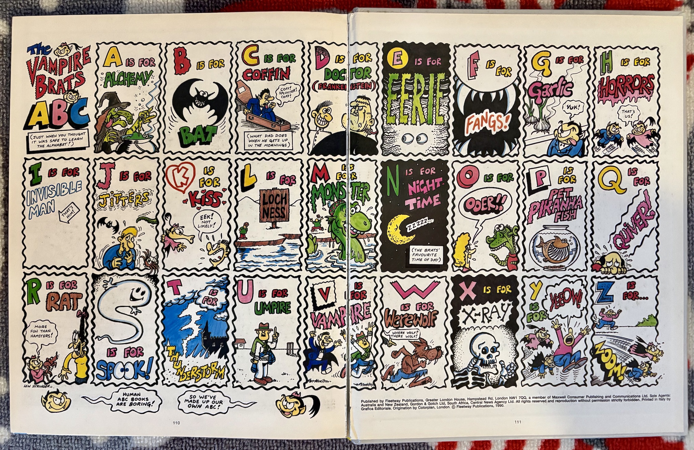 They were Vampires of the same age as the readers, so despite being undead they still had to learn. In their own unique way, of course. While they may not have a strip in the annual, they do get pride of place with their version of a school’s ‘ABC’ wall chart as the double-page spread that rounds off the entire book. It’s a fun and imaginative entry and in particular I laughed at U, V and W and really any that follow on from the previous letter. With this little sampling I do hope I can get to read some of their actual strips next year.