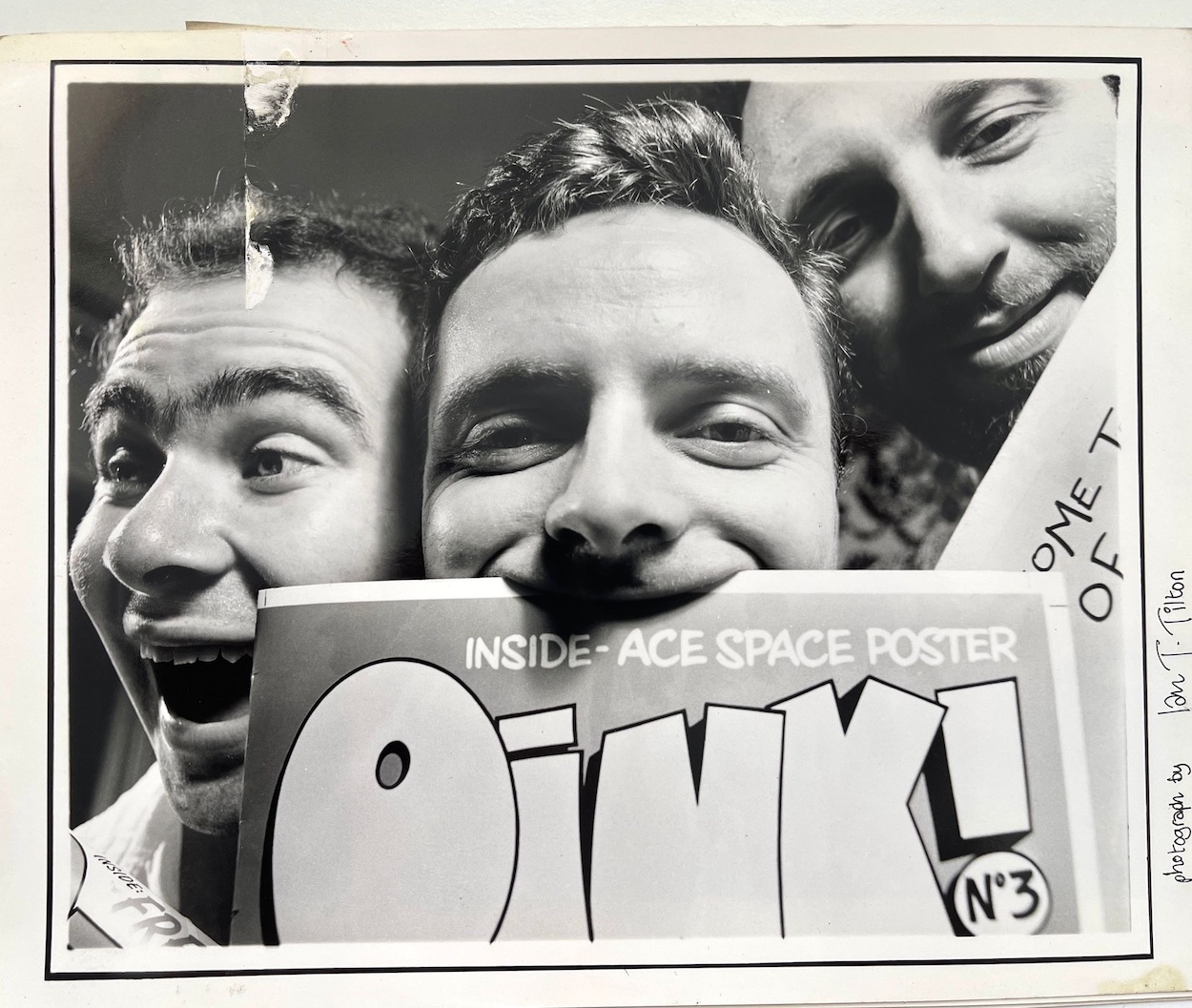 Unfortunately, despite months of research the artist responsible for this iconic cover remains unknown, however the person responsible for photographing it is another matter altogether. Meet Ian Tilton, OiNK’s resident photographer. He first met Patrick, Tony and Mark Rodgers when he was hired to photograph the OiNK launch party in a local Manchester pub. The idea was to get a portrait print of the comic’s three editors but this proved more difficult than expected thanks to the amount of booze flowing that night.