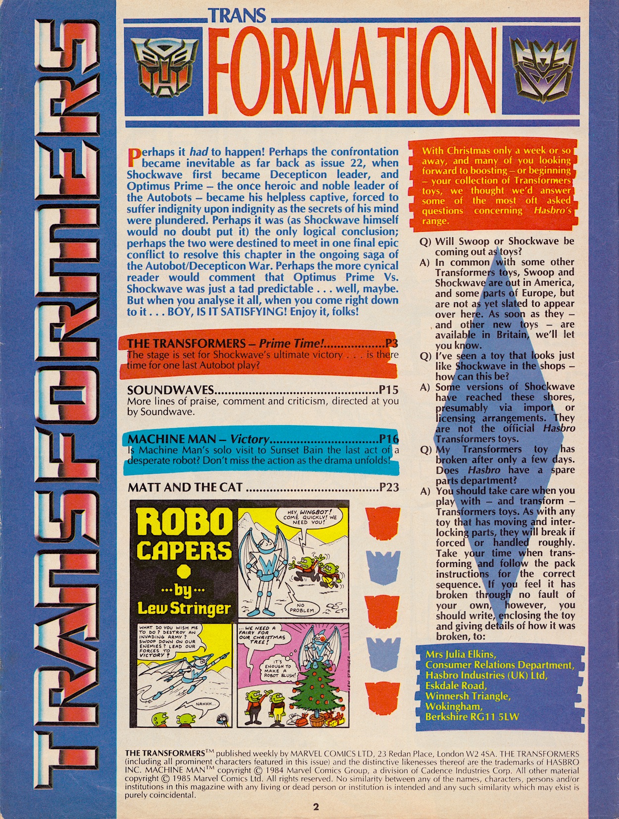 It’s been a long time coming but finally it’s time for the next instalment of Transformers at Christmas, my yearly look at the Yuletide issues of Marvel UK’s epic G1 comic on their 40th anniversaries. Well, it’s almost time. There are still seven days to go but first let’s take a look at how 1985’s special issue was promoted in the previous issue. In fact, this issue includes its own holiday highlights on the editorial page too.