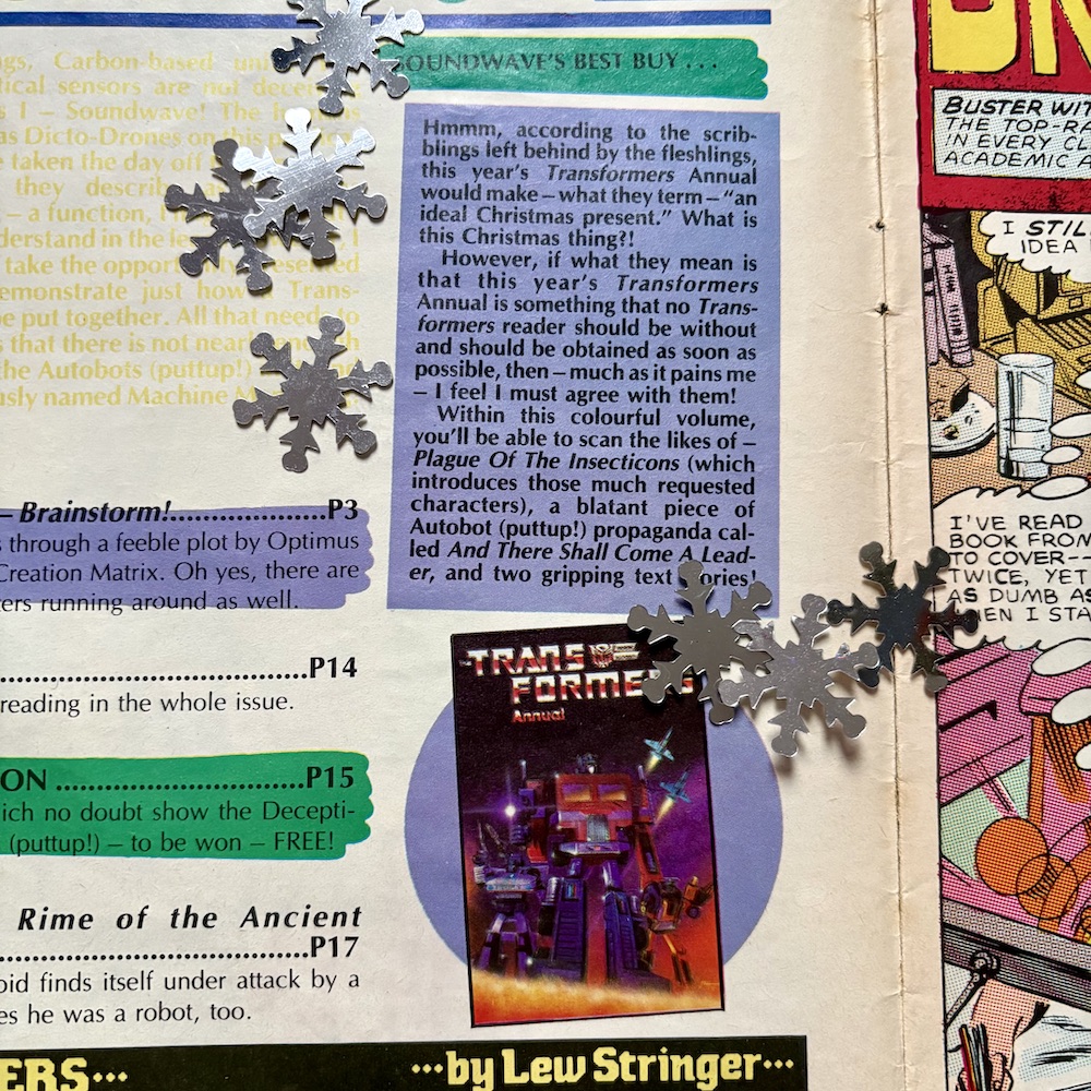 That’s us ready for Christmas 1985 in the world of The Transformers. So #41 will be right here in just seven days on Sunday 21st December 2025, my 48th birthday! (It originally went on sale on my 8th. Eek!) Then just four days later on Christmas Day itself the first in-depth review of a classic Transformers Annual. Don’t miss either. They’re both fantastic!