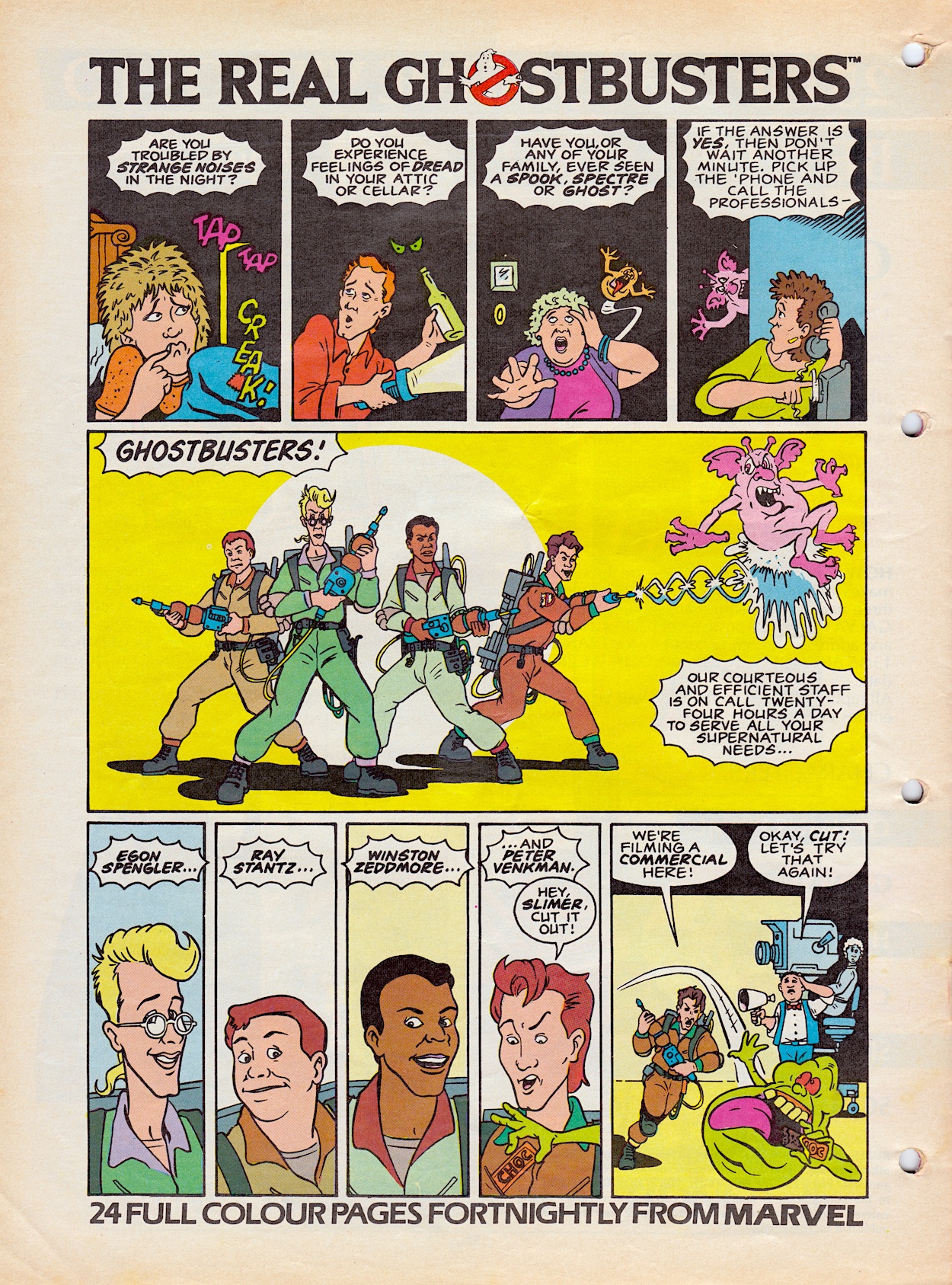 The first time I saw it was in #3 of the Ghostbusters’ comic when it was drawn by a comics fan who had been the recipient of a “Surprise, Surprise” by Cilla Black and Bob Carolgees. (Ask your parents if you don’t know.) Using the commercial from the film with the characters from the cartoon was a clever way of summing the comic’s humour up and remains memorable for fans to this day. Certainly this fan anyway.