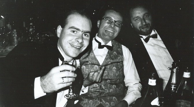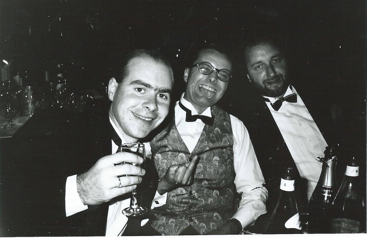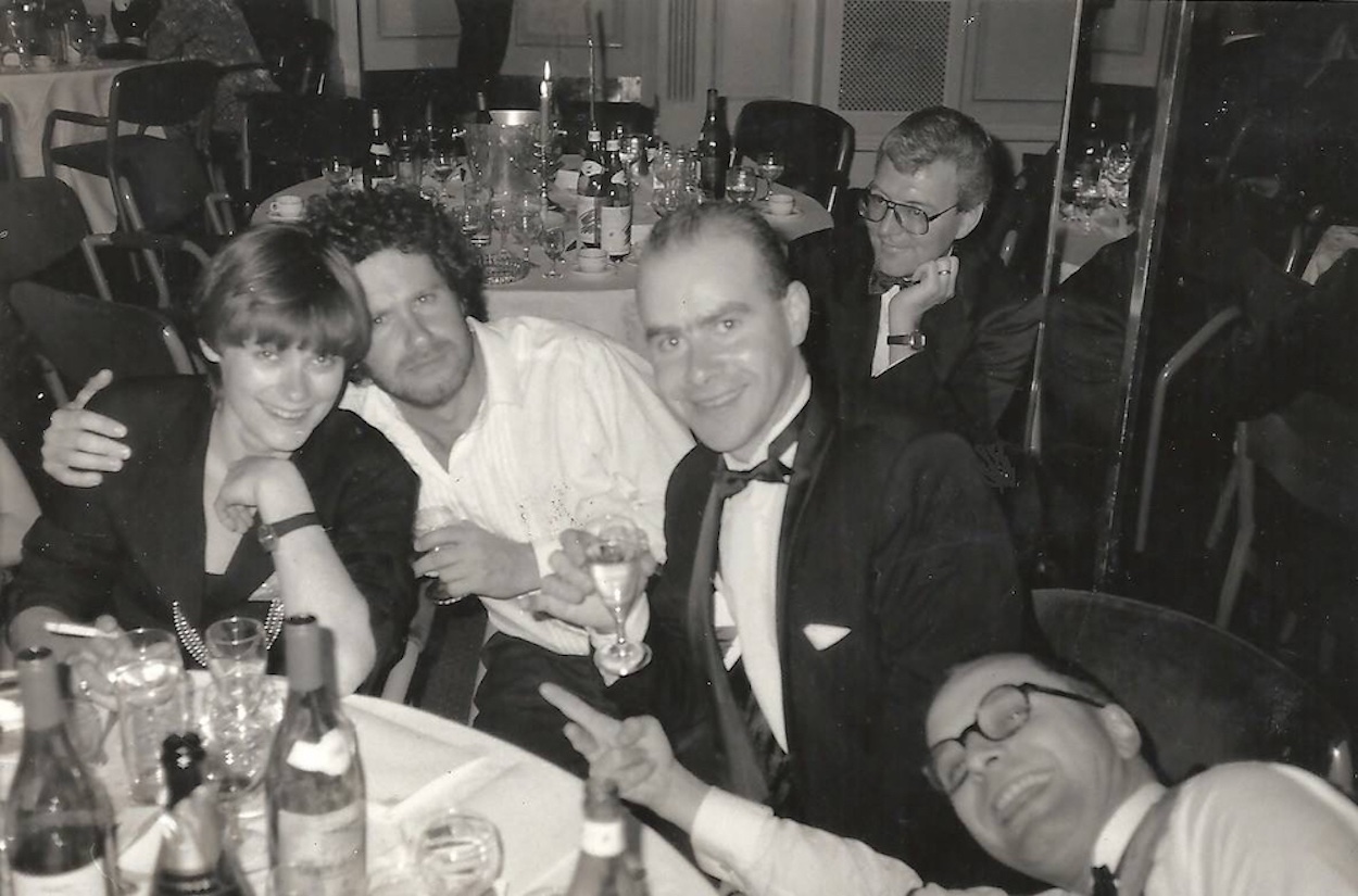 “Patrick, Mark and me at the Royal Television Awards with Round the Bend,” said Tony. “Where we came runners up so we got pissed, and me and Rory McGrath were nearly thrown out for shouting abuse at Richard Stilgoe, who was doing a set and we thought he was smug and shit.” (Stilgoe is a songwriter, musician and broadcaster and has contributed lyrics to Cats, Starlight Express and The Phantom of the Opera, in case you didn’t know.)