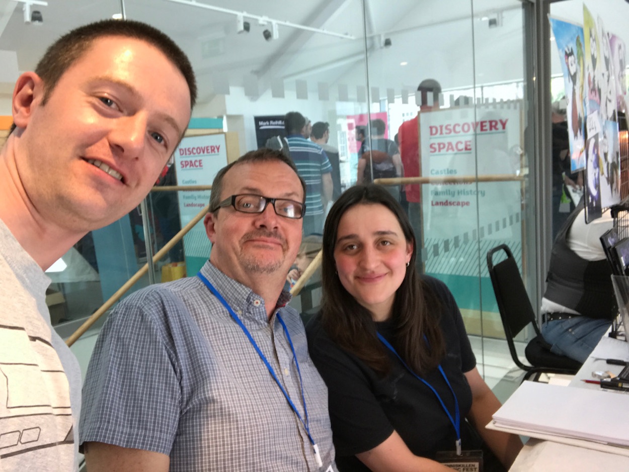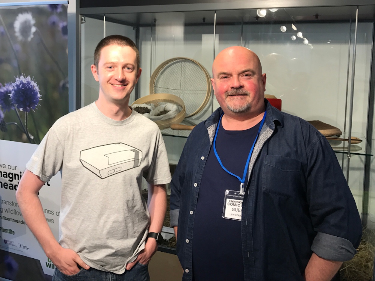 I’m going to wrap up our OiNK Scrapbook with some of my own photographs. The first time I met Patrick was during the days of the old blog. He was on a family vacation in Donegal and took the rather long drive to Belfast (across the island!) to see me in my old house to discuss some future projects. Not long after that I then got to meet Lew Stringer (Tom Thug, Pete and his Pimple, Pigswilla) and Davy Francis (Cowpat County, Greedy Gorb, Doctor Madstarkraving) at the Enniskillen Comic Fest.