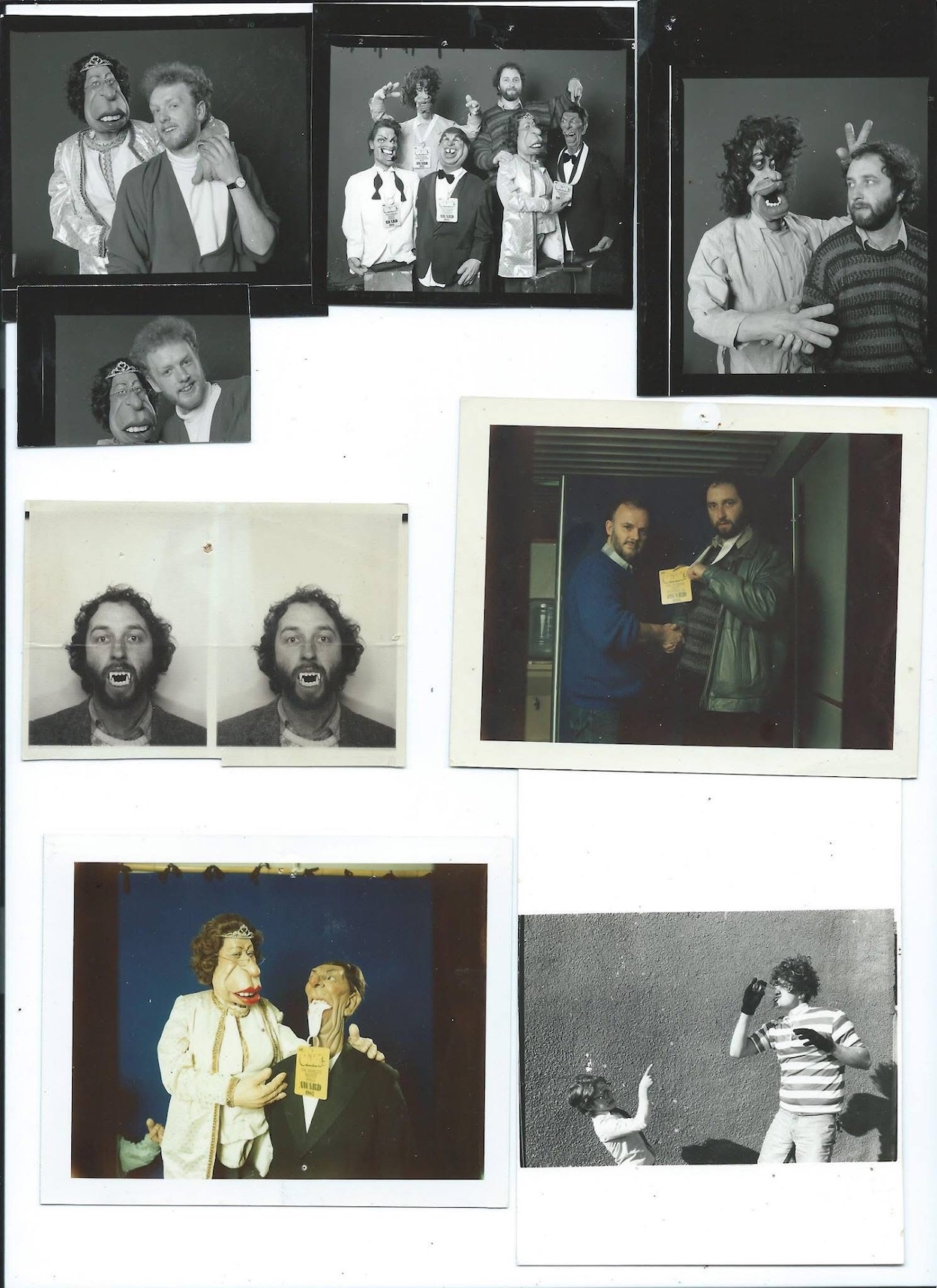 These weren’t the only photos in Tony’s archive. Next up is a wonderful collection of polaroids and snaps by OiNK photographer Ian Tilton that Tony scanned in, mainly of #30’s OiNK Awards when they worked with the Spitting Image Workshop to produce an apparently star-studded event. You’ll also see one of the actual celebrities, John Peel amongst the chaos, a photograph taken of Marc Riley as a disguised Snatcher Sam and Tony’s son, Paul Husband who you’ll also see in the next photo posing with some of his dad’s creations.