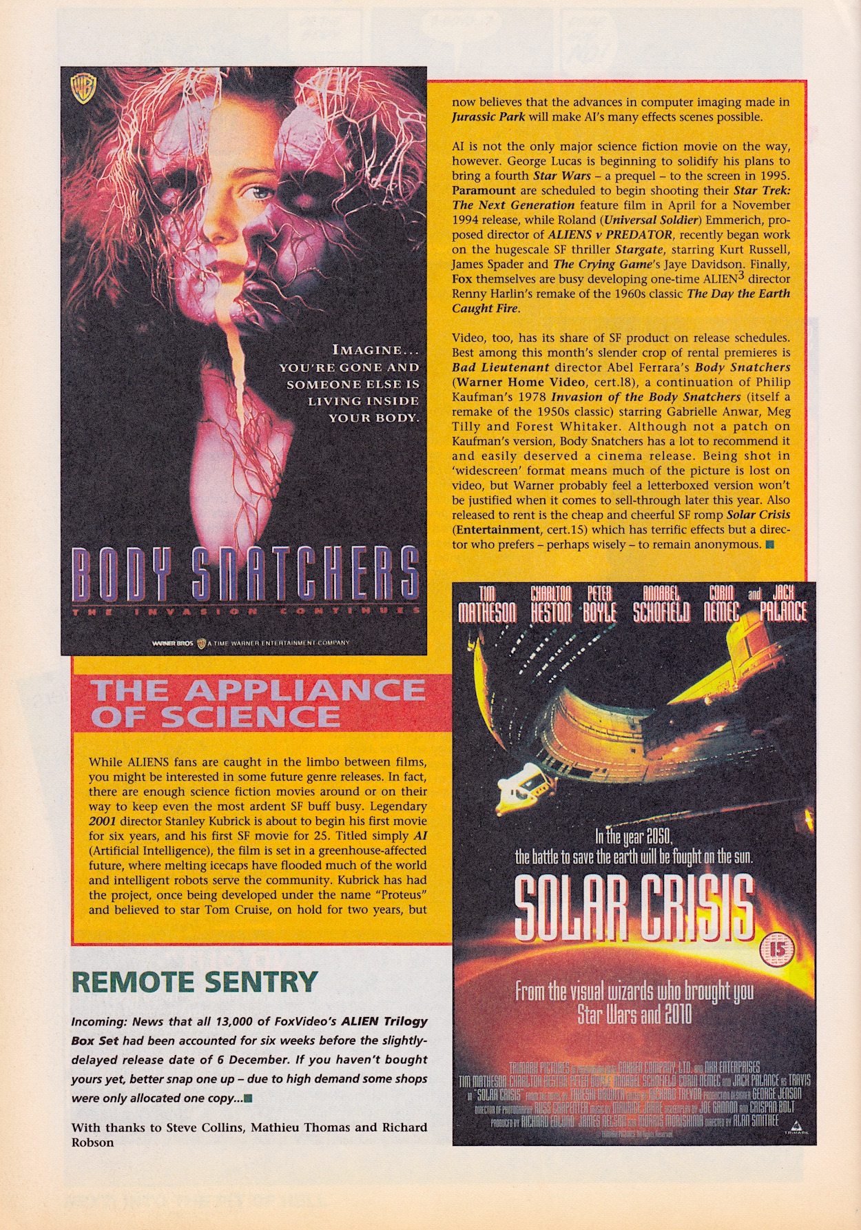 I always knew I should’ve been trying new movies, but it was like wanting to try something different from your local takeaway; after perusing the menu (or the video store) for ages we always pick what we already know we like. But this was indeed a time of discovery and Solar Crisis was one such weekend rental, although I remember absolutely nothing about it. It’s exciting to see Stargate mentioned, I’d loved to have seen the news stories develop if the comic wasn’t coming to its end soon.