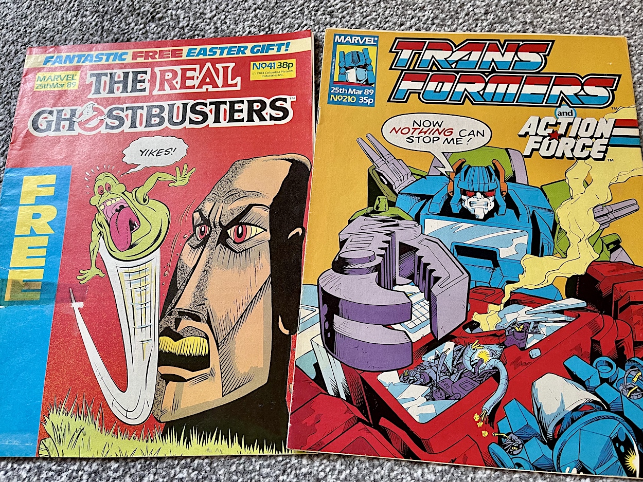 A funny cover by Brian Williamson and Bambos Georgiou to mark the Easter school holidays for readers of The Real Ghostbusters, while those buying Transformers and Action Force were probably gasping in horror rather than giggling, thanks to Andrew Wildman’s shocking image.