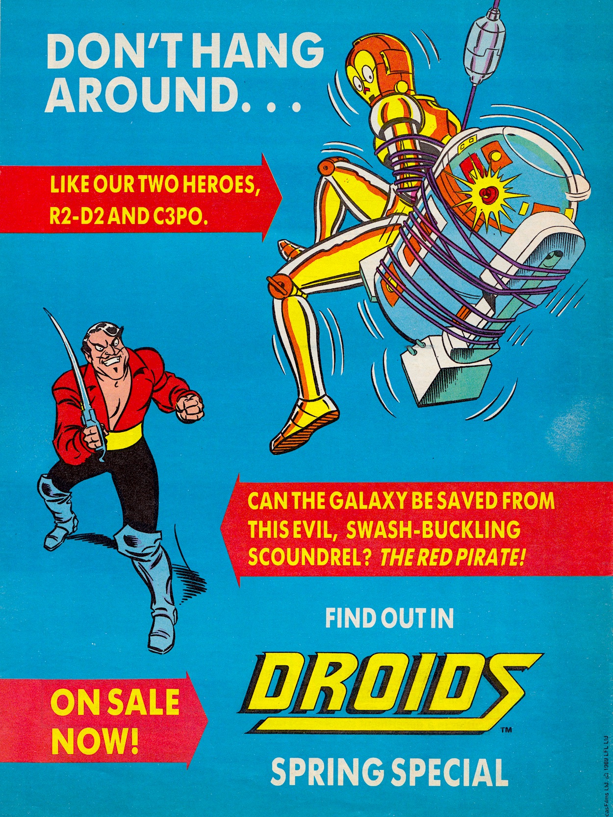 First up is Droids. This wasn’t an extra edition of a regular comic, rather a one-off special importing an American strip to the UK for the first time. Droids was a cartoon Star Wars spin-off released in the States as a companion series to Ewoks, the latter of which I remember my friends watching. Toys, comics and various other merchandise were all created for what would surely be a sure-fire hit, but in the end Droids only lasted one season of 13 episodes and a special, the comic also cancelled after eight bi-monthly issues so it never got beyond this edition and some Marvel Bumper Comic appearances this side of the Atlantic.