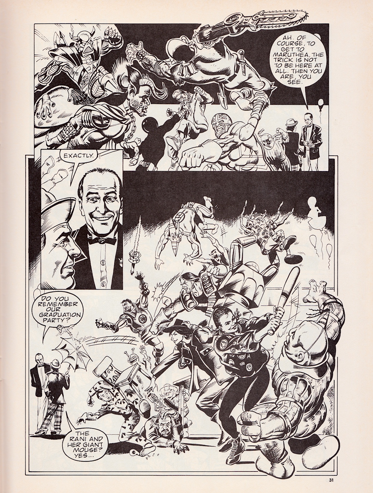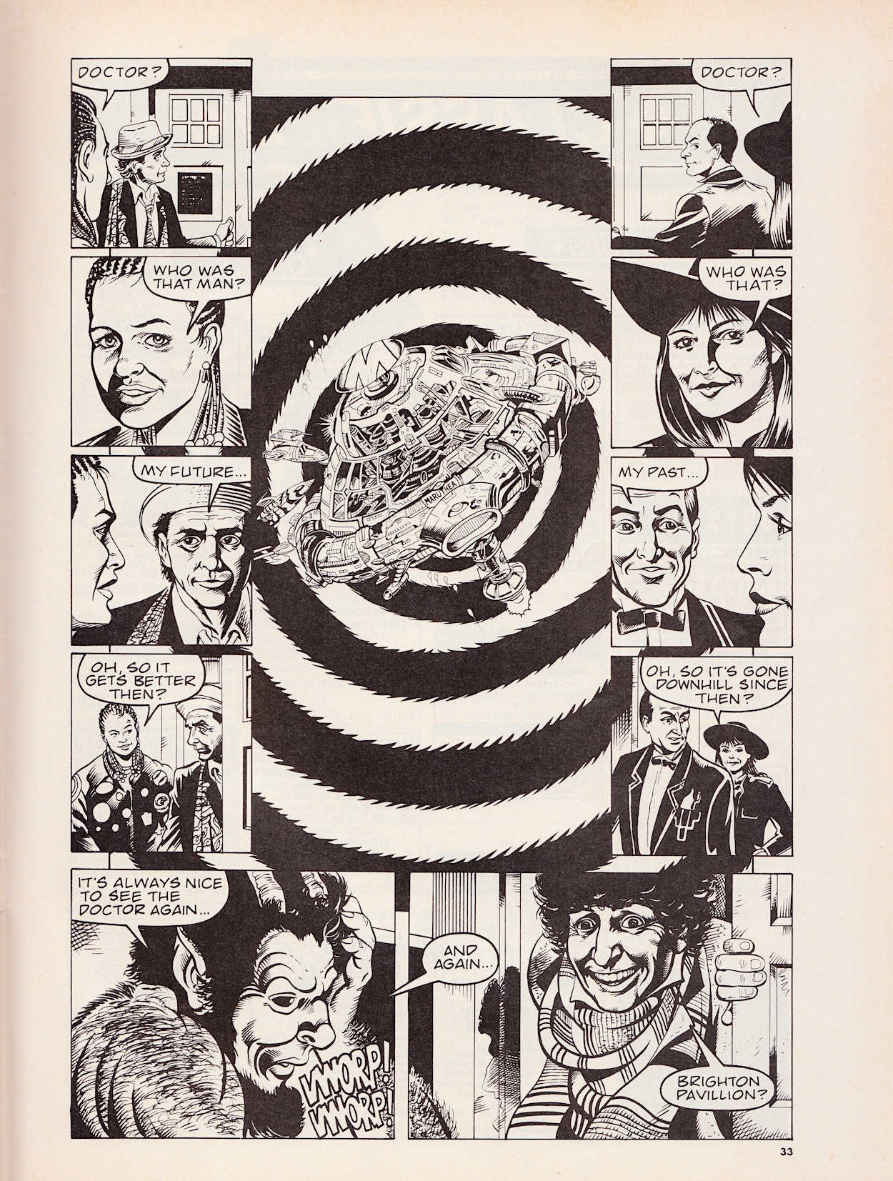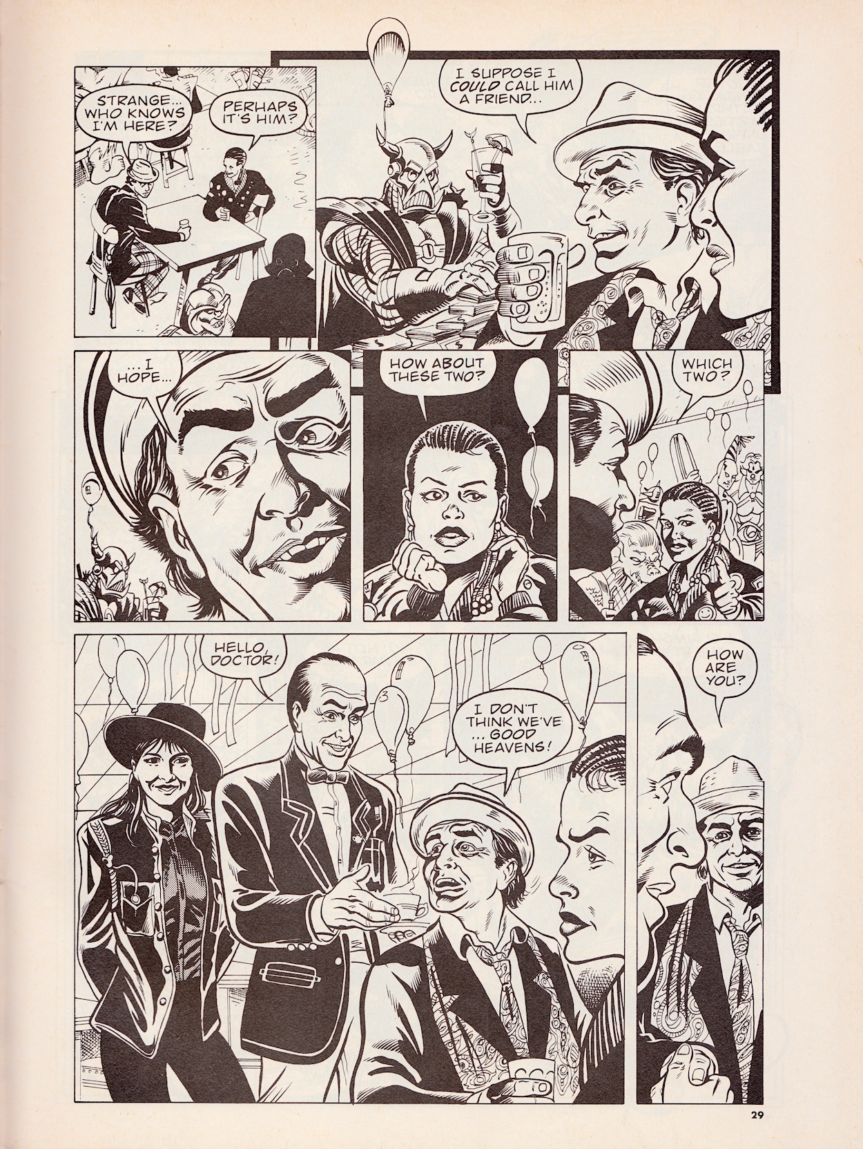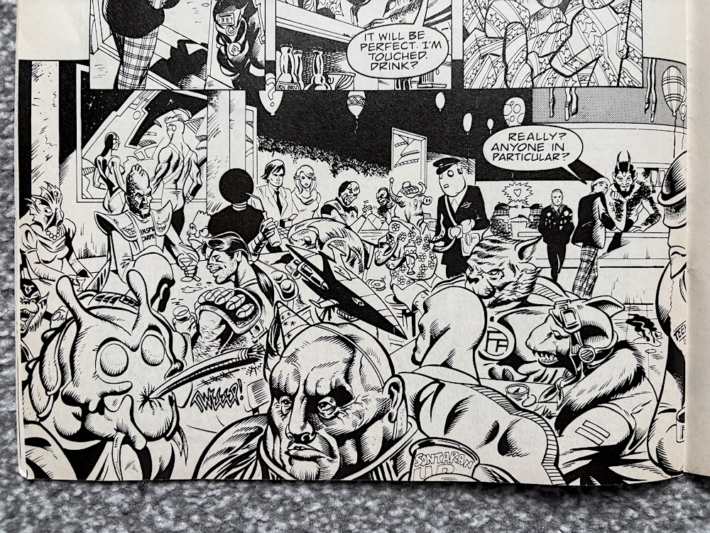 So just why is this issue of Doctor Who Magazine in this section of the blog? In this strip the Seventh Doctor is visiting a bar at the centre of the space-time vortex run by Bonjaxx, whose birthday it is. Everyone from across space and time frequents this bar and have turned out to celebrate. Friends and enemies drink side-by-side as the Doctor and Ace meet two mysterious strangers, the Doctor and the other man exchanging a cryptic conversation while Ace and Ria get caught up in the inevitable 80s movie-style bar brawl.