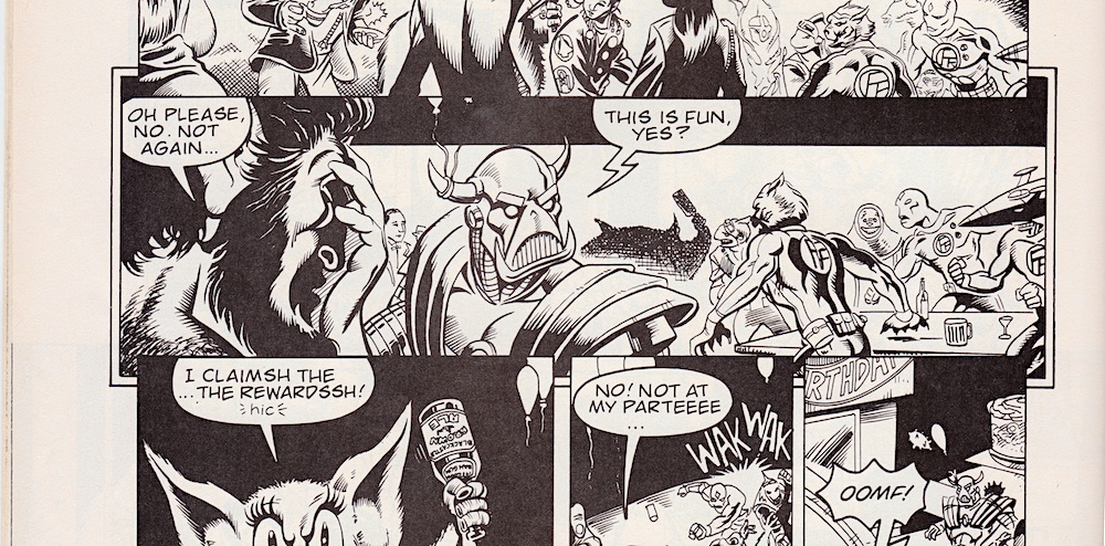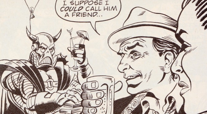 As you can see, our resident Freelance Peacekeeping Agent was also taking a well deserved break, at least until a Meep got a bit angry and things escalated as only bar fights can. Death’s Head is only in a few panels but he makes his presence felt and thankfully this was before his horrible redesign for Death’s Head II. It’s an insane little piece, although I’ve no doubt there are some who took it far too seriously and either saw it as proof these characters all existed in the same universe, got annoyed that it was “timeline/universe inaccurate” or who went to great lengths to explain how they could all be together.