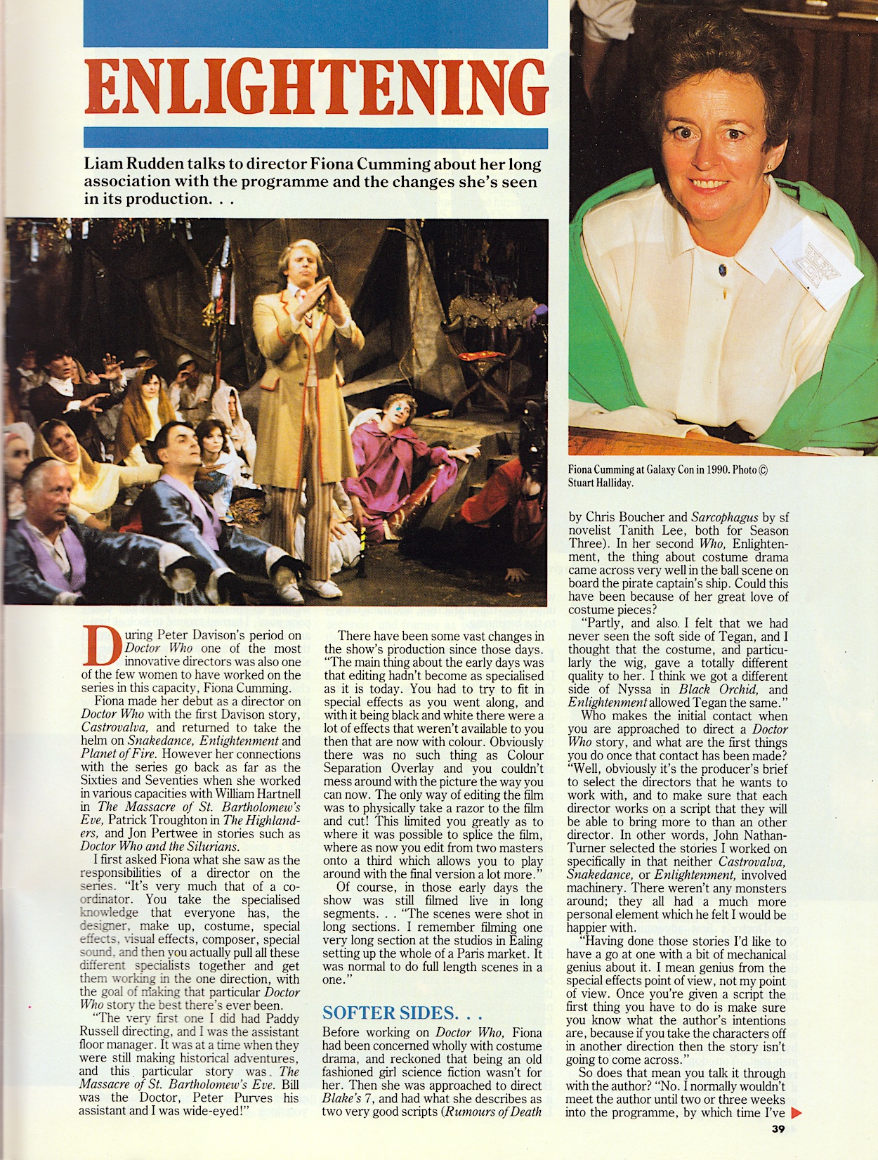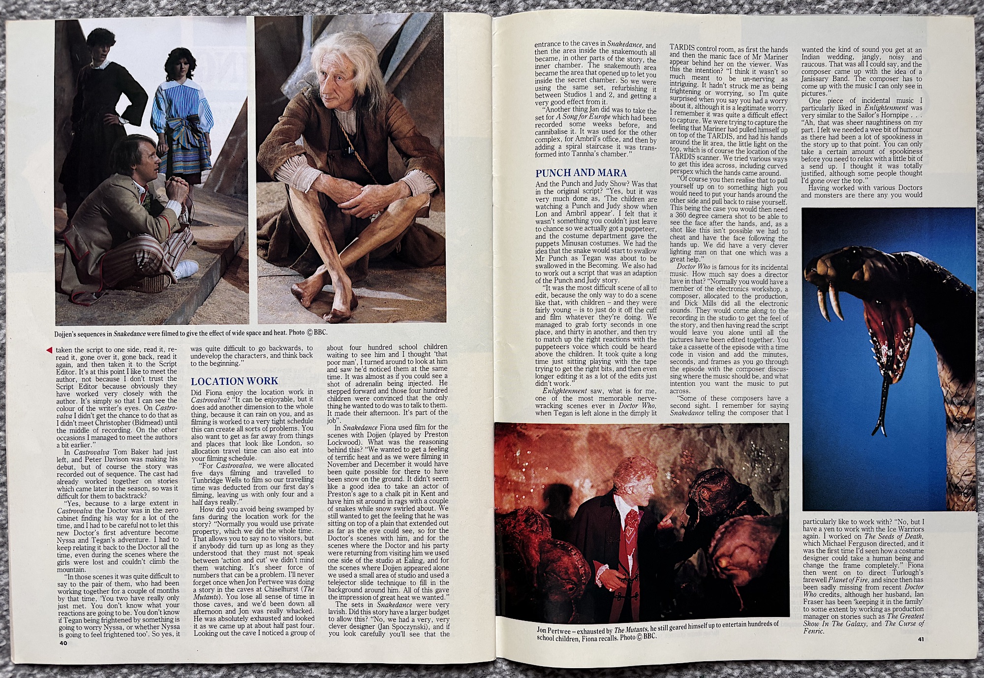Finishing off the rest of the magazine I wanted to touch upon Enlightening, a superb interview with director Fiona Cumming, especially as it counters some corners of today’s online world. There were so many hateful men complaining about seeing women’s names on writing and directing credits during Jodie Whittaker’s and Ncuti Gatwa’s runs but the 1980s got there first. I was pleasantly surprised to see so many in the credits during this era. How little the sexist trolls actually know, eh?