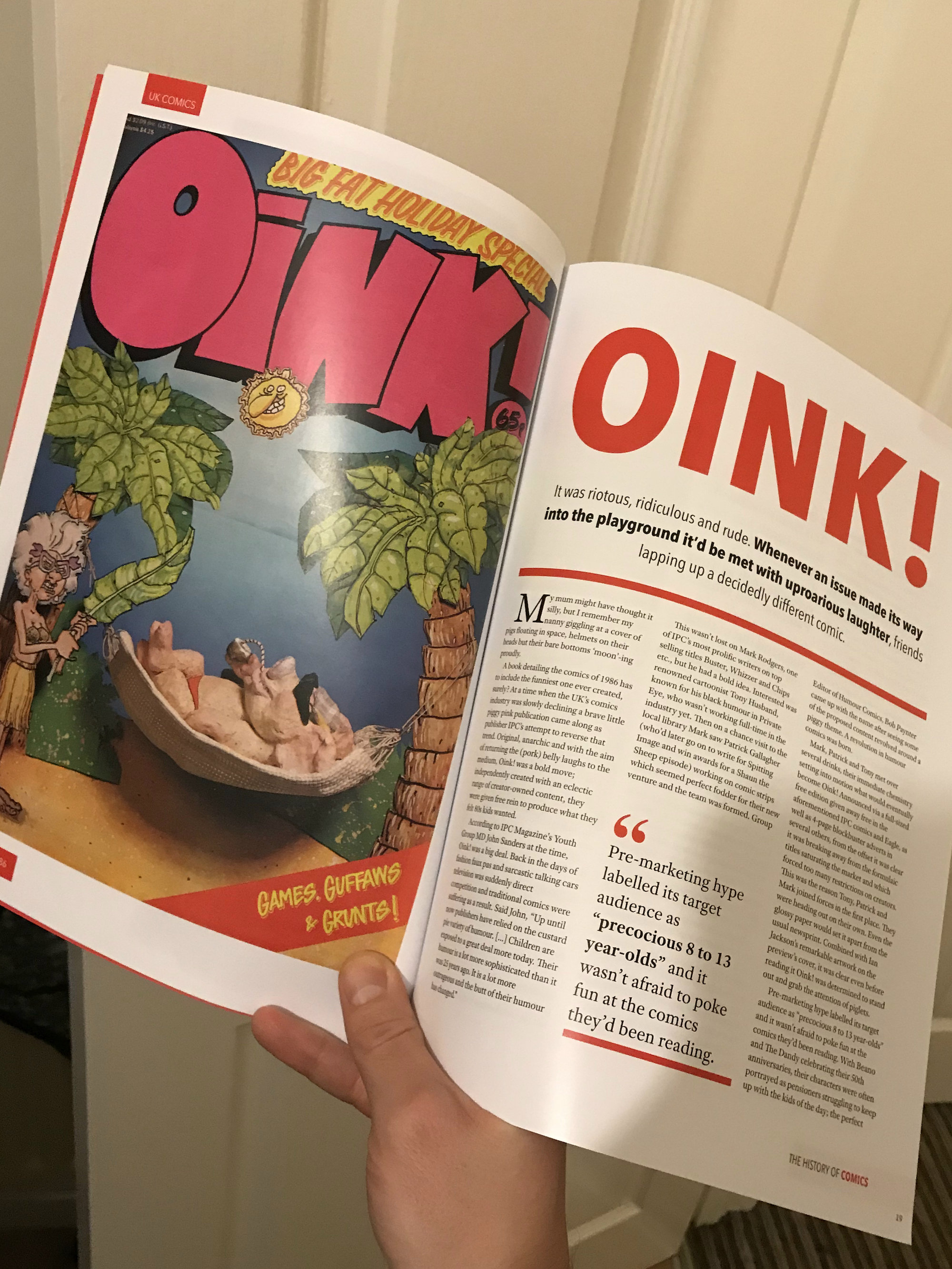 While I knew people who had enjoyed OiNK as a child (or even more recently) could be among the readers, the main aim of this magazine series is to introduce a vast array of classic and modern comics to the readers and so that was my goal. In doing so, I wanted to include lots of information about the comic’s creation, its life and evolution, as well as examples of the actual humour and cheeky wit. I wouldn’t be doing the comic justice by just reciting facts and figures after all.