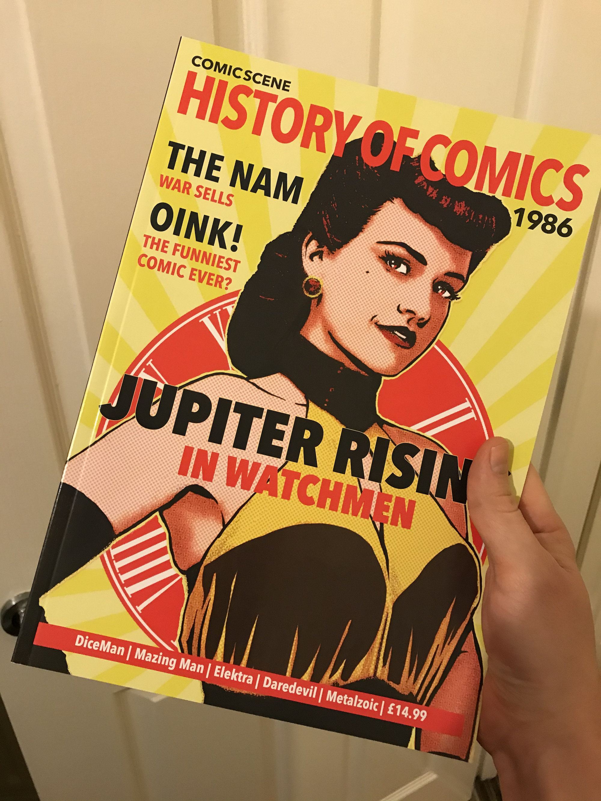 Last summer the editor of the previously cancelled Comic Scene magazine contacted me about contributing to a new project he was putting together. Comic Scene: History of Comics is a new, ambitious partwork magazine series which aims to eventually cover 100 years of worldwide comics history. Hence its name, really. Each 60-page magazine is dedicated to one particular year and the 1986 volume has a certain title mentioned right on its front cover.