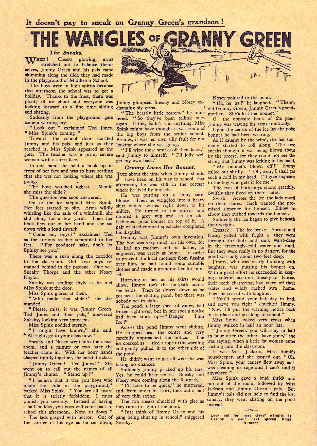 Along the top of a Jimmy and his Magic Patch story readers are told to turn to a certain page to find out all the details of the special Christmas issue, but it turns out it’s only this small promo in the middle of a Tick Tock Timothy prose story. The main selling point of the festive issue would be a game called ‘Jinko’, a basic dice board game printed on the back cover. Over the page from this promo we find Tom Thumb is still in the comic, albeit as a picture-panel story instead of the prose of #1.