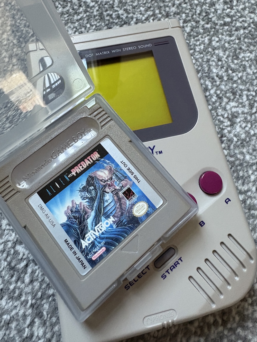 Back in 1991 my first edition of Commodore Format included the UK version of the C64’s Aliens game on the cover tape. It’s very basic today but at the time its eerie atmosphere and sudden sound effects gave us the willies and jump scares aplenty. Now, I’ve added a game that lands somewhere in between the two time-wise to my growing Nintendo GameBoy collection (which began because of the Jurassic Park comic on this blog), Alien Vs Predator: The Last of his Clan from the 90s.