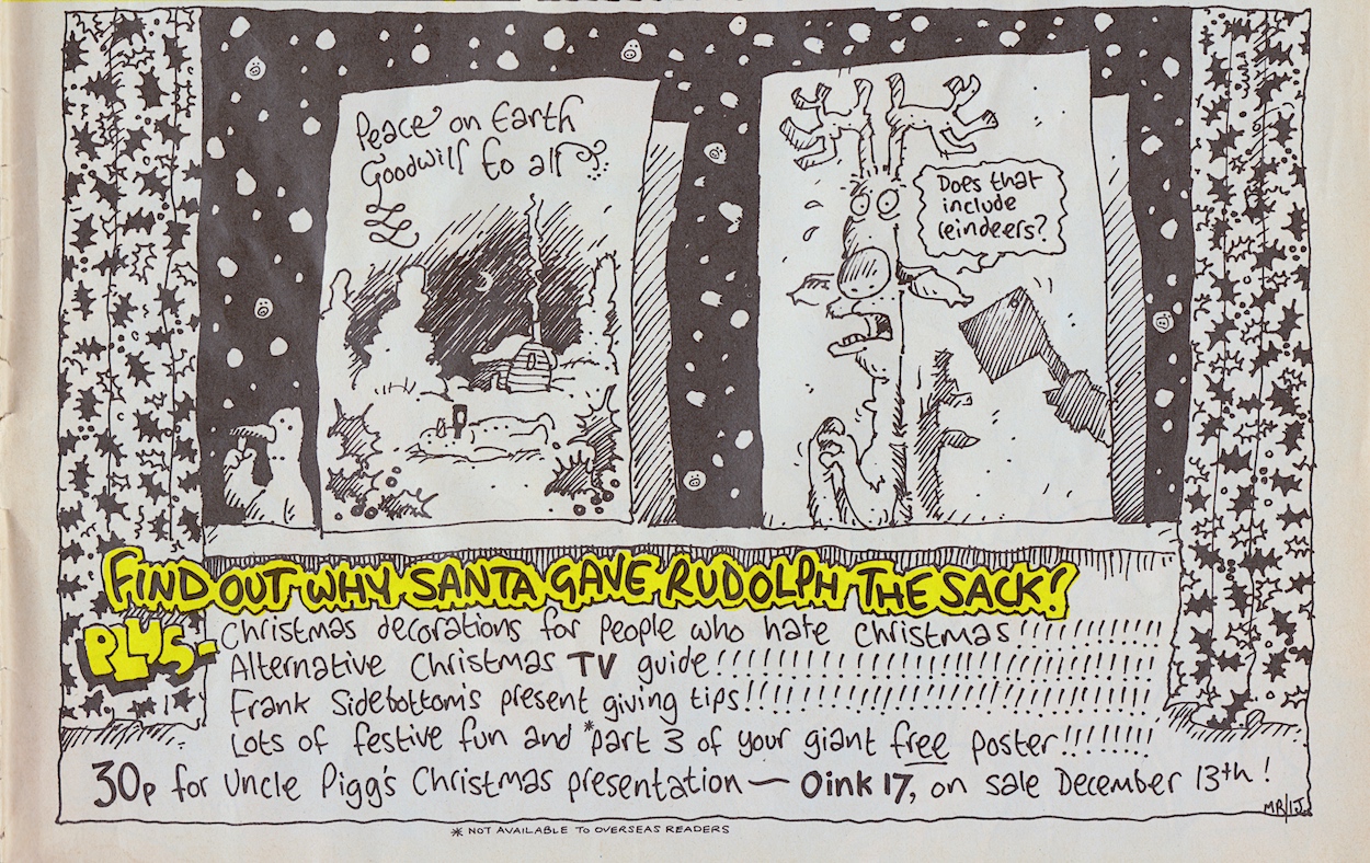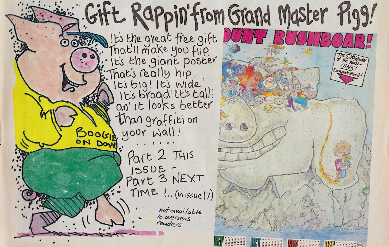 Not that you could miss it of course. It’s not like it’s only going to be on the blog for a day. It’ll be there forever for you read. But I’ve digressed ever so slightly. There’s also the start of a brand new multi-issue comedy adventure strip called King Solomon’s Swines which is bound to bring back many happy memories both for readers of OiNK in the 80s and for fans of 80s adventure movies.