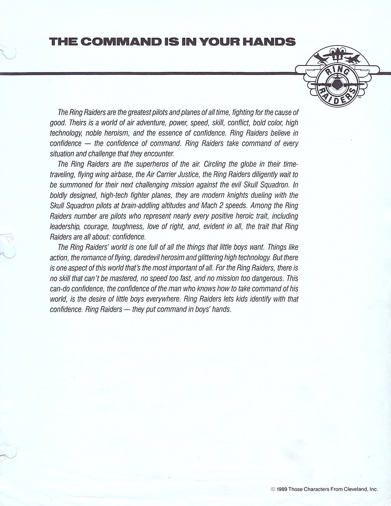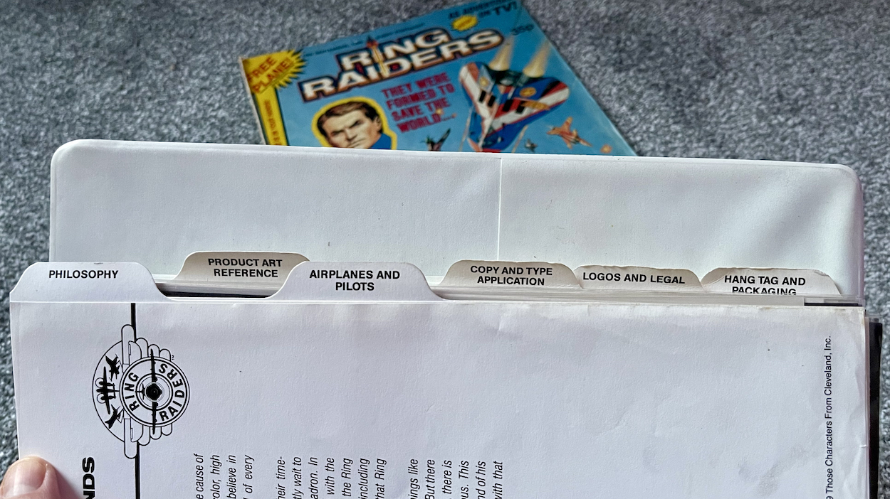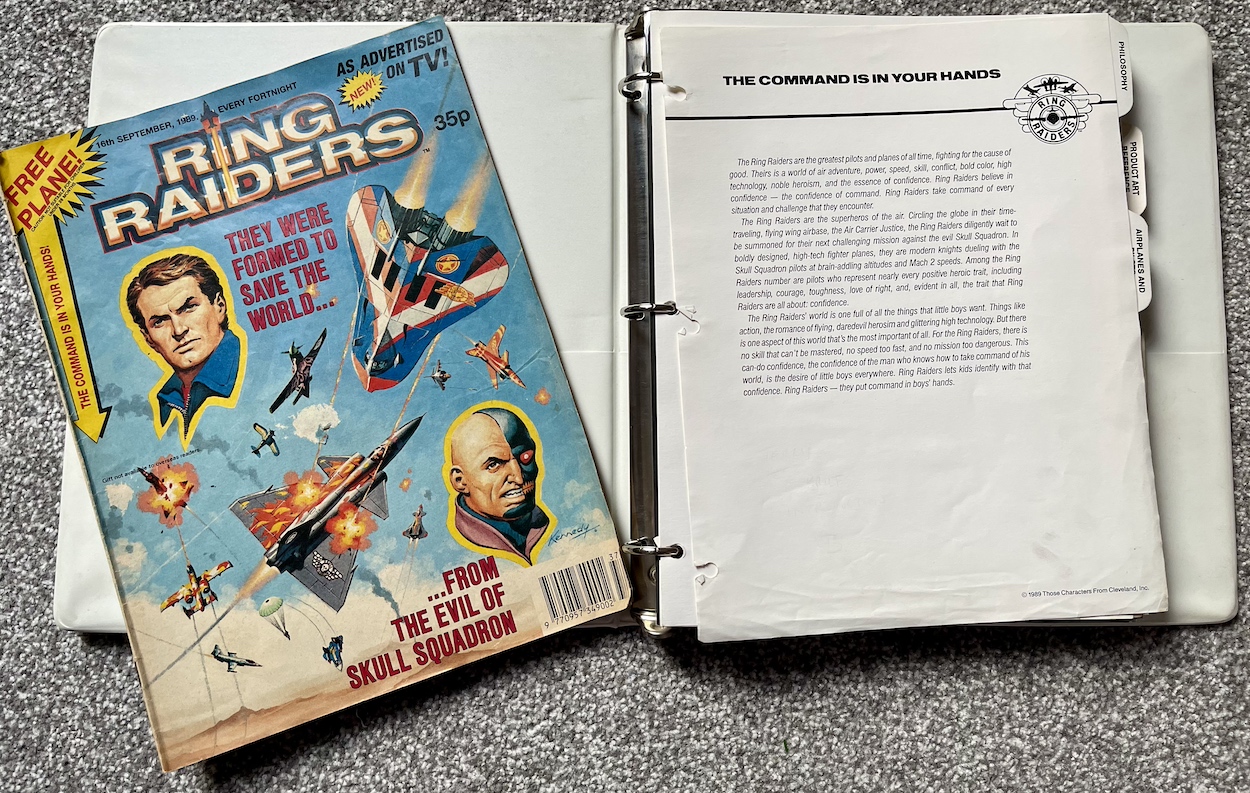 Here we are at the end of this monthly series already. It’s been really interesting looking at this Ring Raiders Style Guide sent out to all potential licensees by the copyright holders Those Characters From Cleveland (TCFC) back in 1989. Judging from the feedback I’ve been getting on socials it seems like you lot agree. The final 12 pages are all here and as you can see from the photo above they make for a meatier read this time around.