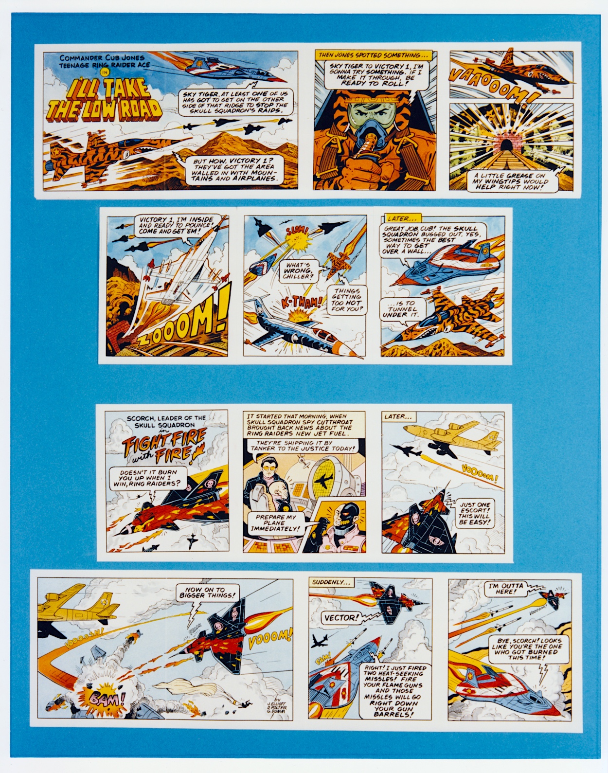 The page of suggested taglines sound like they’ve been written by committee. A committee who has no idea about aircraft. They’re cringe-worthy and thankfully weren’t used on the toys themselves or in the comic. You can also see all potential designs were subject to TCFC’s approval, however the comic’s editor Barrie Tomlinson said the people behind Ring Raiders were more open than most to what licensees could bring to the franchise, and they were very happy with what Barrie and his team were producing.