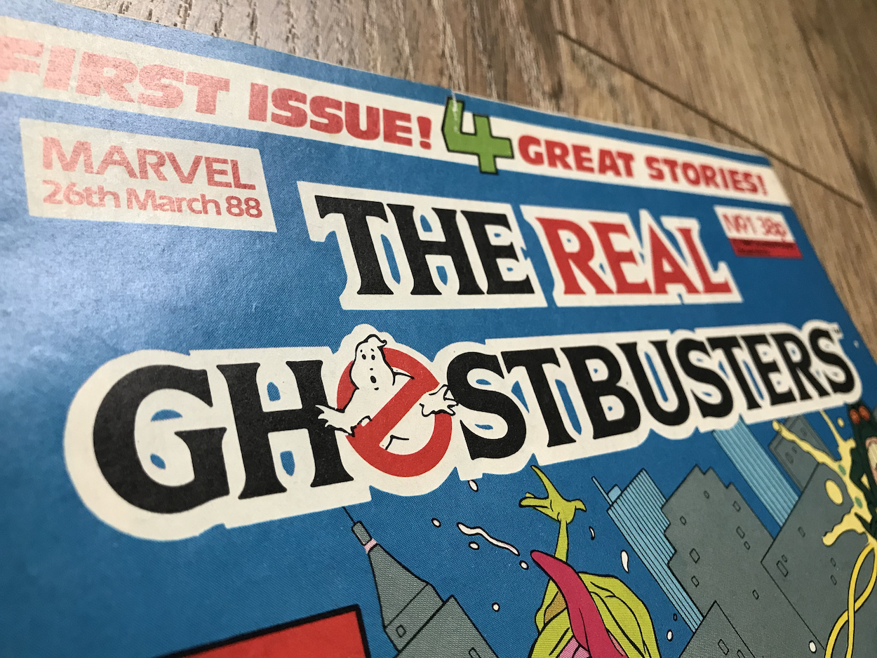Then there’s Marvel UK’s one-page strip advert introducing Peter Venkman, Winston Zeddmore, Egon Spengler and Ray Stanz that had been running in other comics that year and which took its wording directly from the movie. This was written by Richard (under a pseudonym), drawn by Brian Williamson (Hook Jaw, Doctor Who, Warhammer) and Tim Perkins (Transformers, Chopper, Thor Losers), lettered by Richard and coloured by Chris Matthews (Thundercats, Action Force, Mugshots).