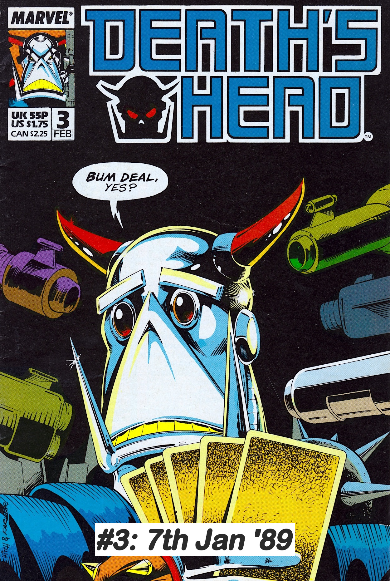 Created as a one-off character for Marvel UK‘s Transformers, Death’s Head enjoyed a meteoric rise, returning to the comic in epic, important stories before spinning off into his own monthly via Doctor Who and Dragon’s Claws. I only bought the first issue as a child but it was so memorable I’ve returned all these years later to see what I missed out on. Below is an introduction to the Freelance Peace-Keeping Agent, the real time read through and even an extra feature showing how beloved he remains today. This is the story of the original and best Death’s Head, yes?