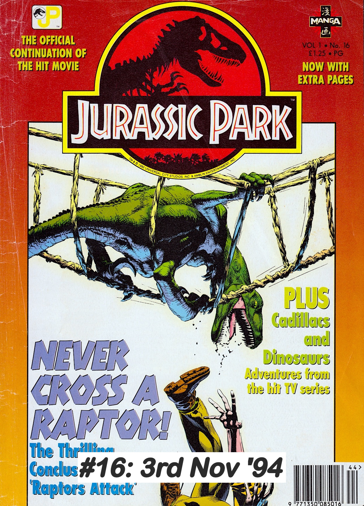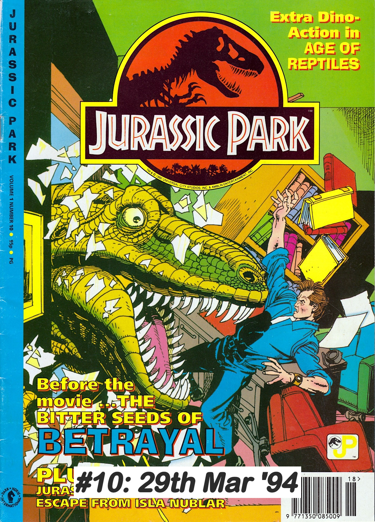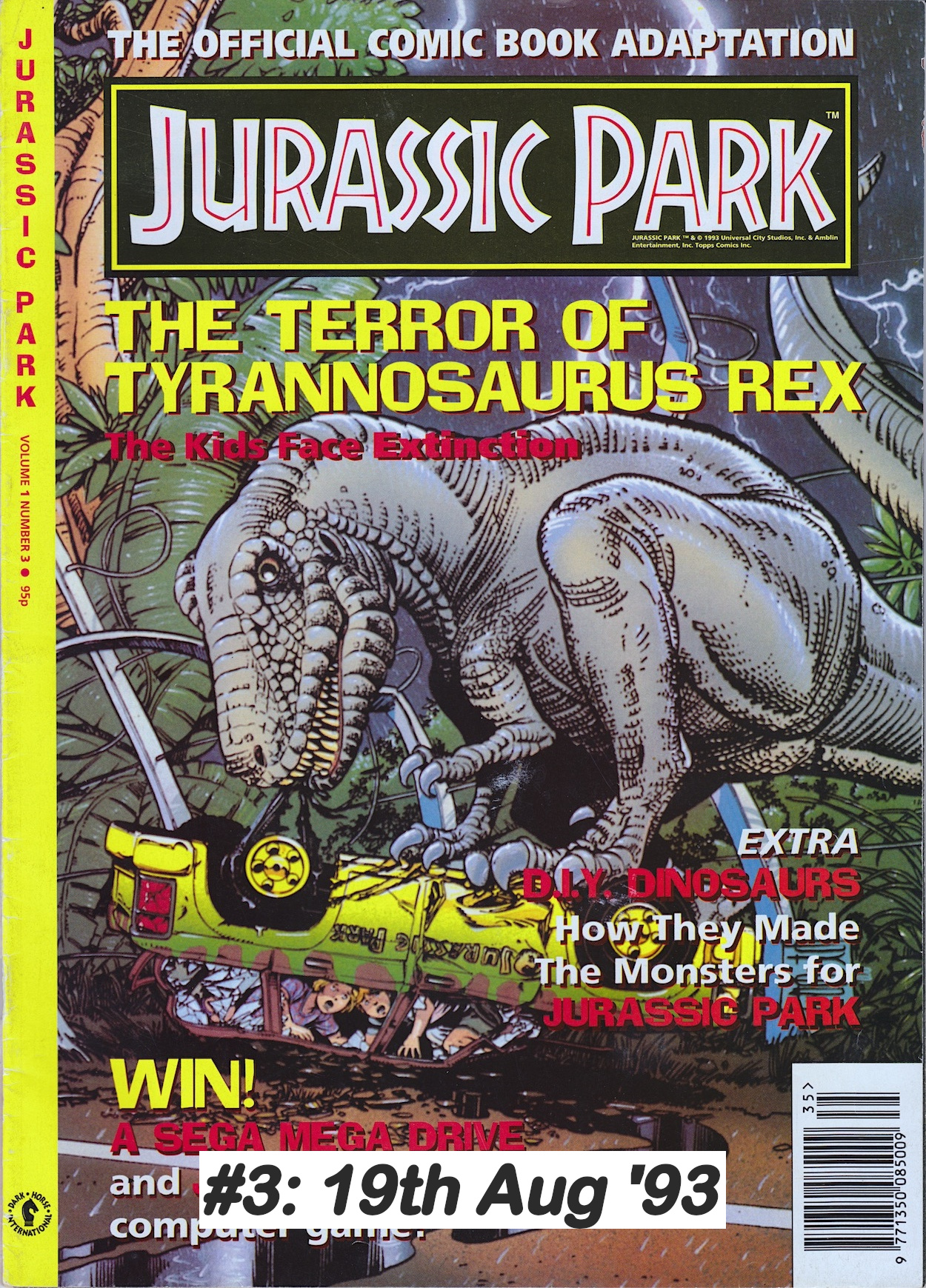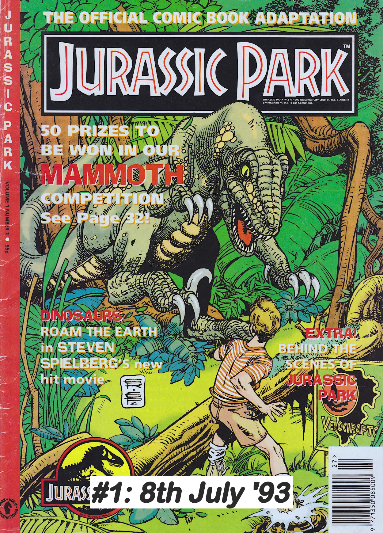 Given the phenomenal success of this particular franchise it always surprises me how few people were aware of this comic. Importing the American stories while adding in back up strips and features, in the 90s this briefly brought me back to the world of comics after I’d temporarily moved on as a teenager. This series contained the first ever official sequel to the original movie and novel, before any of the subsequent ones we’re now so familiar with. It’s a fascinating read. Below you’ll find an introduction to Jurassic Park (as if one was needed), reviews of all original 16 issues, followed by some additional pieces.