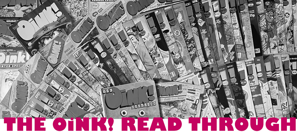 My first comic and to this day still the funniest ever created. OiNK found a place in my heart during some very formative years and has never left. Decades later I had a wish to relive it all in real time and suddenly found myself with a website named after the piggy pink publication with which I could do just that. Below you’ll find an introduction to this very different 80s comic, a link to the full read through and a smorgasbord of further blog sections packed with extra content all dedicated to OiNK. Welcome back to the sty, pig pals.