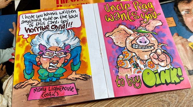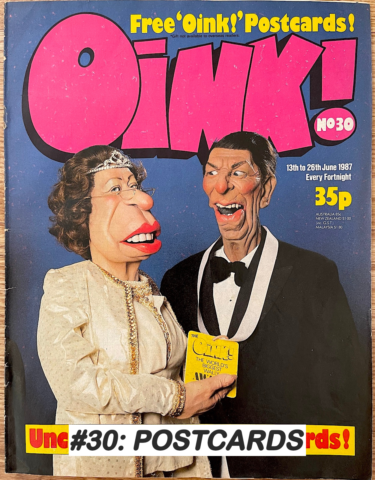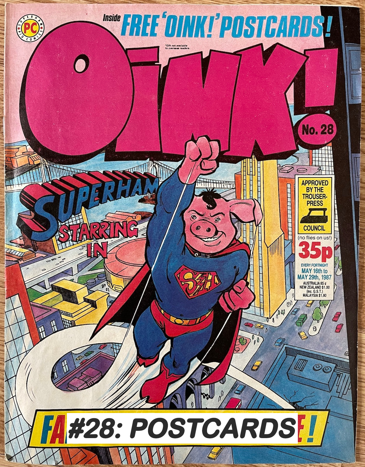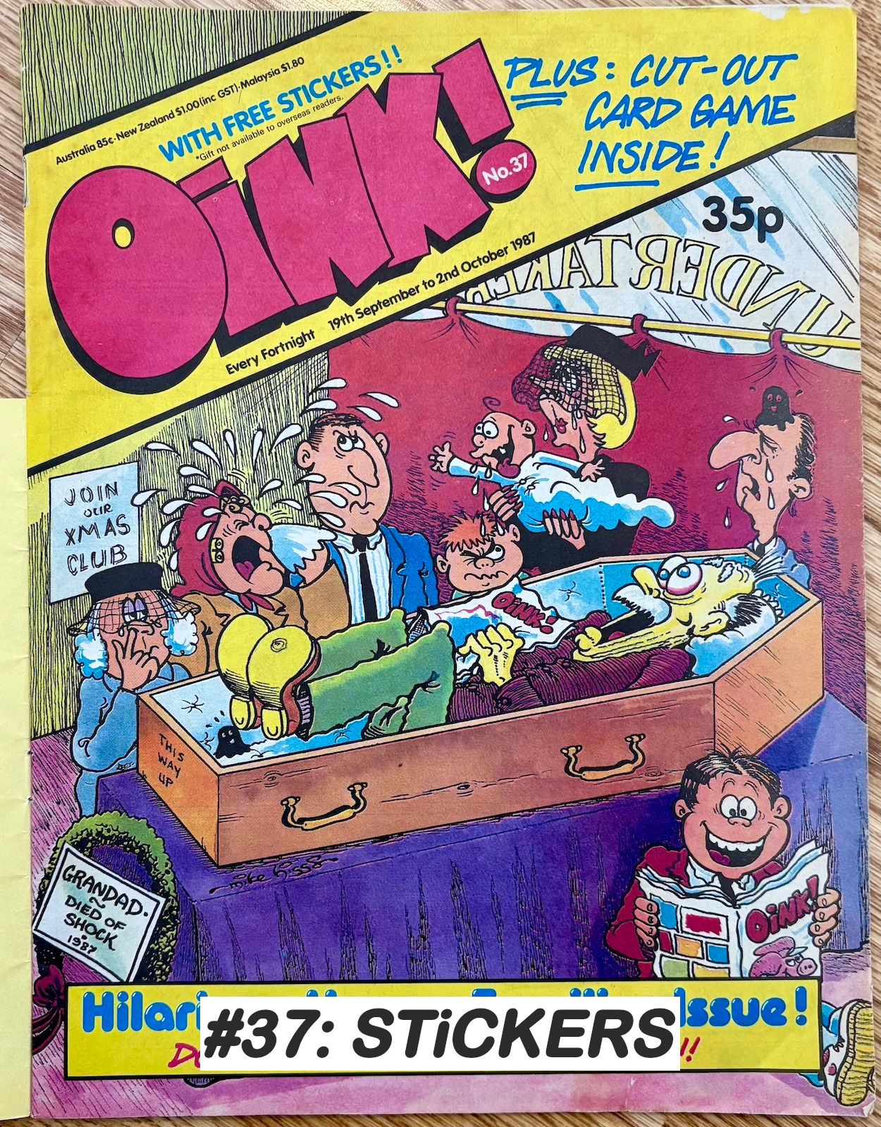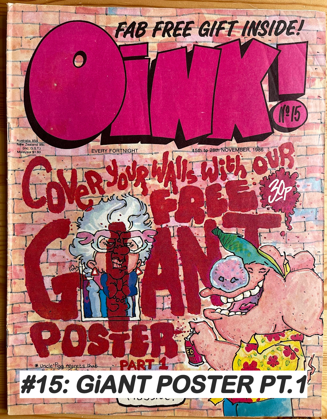 Free gifts were a big deal for comics readers back in the 80s. Rarely appearing and always an event when they did, out of 68 regular OiNKs only 12 issues had something either tucked away inside or stuck to the cover. When an actual free record is given away with the first issue of a new comic you just know any further freebies are going to be special. Below are links to the reviews of the issues that came with a little something extra.